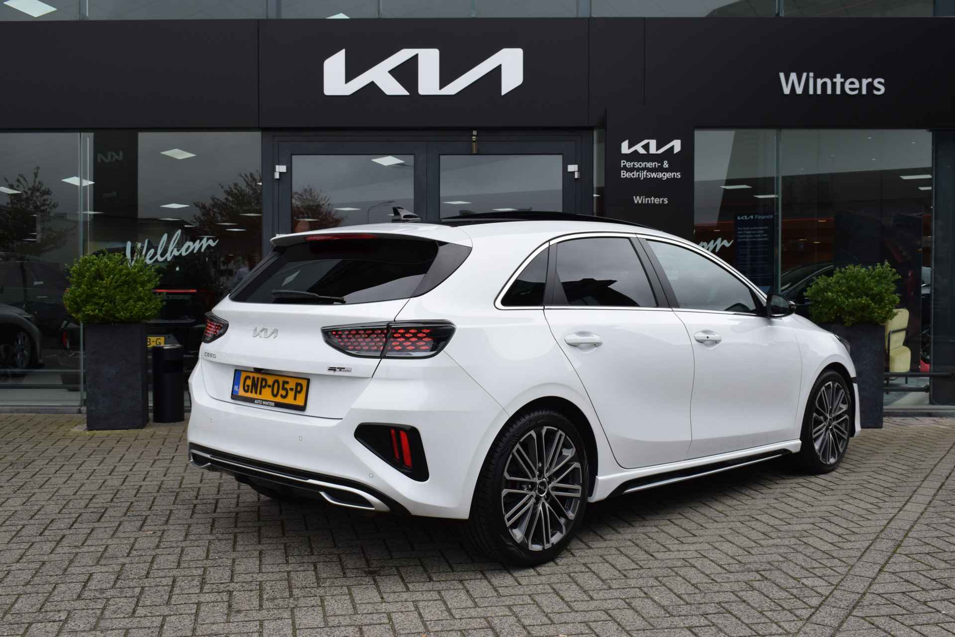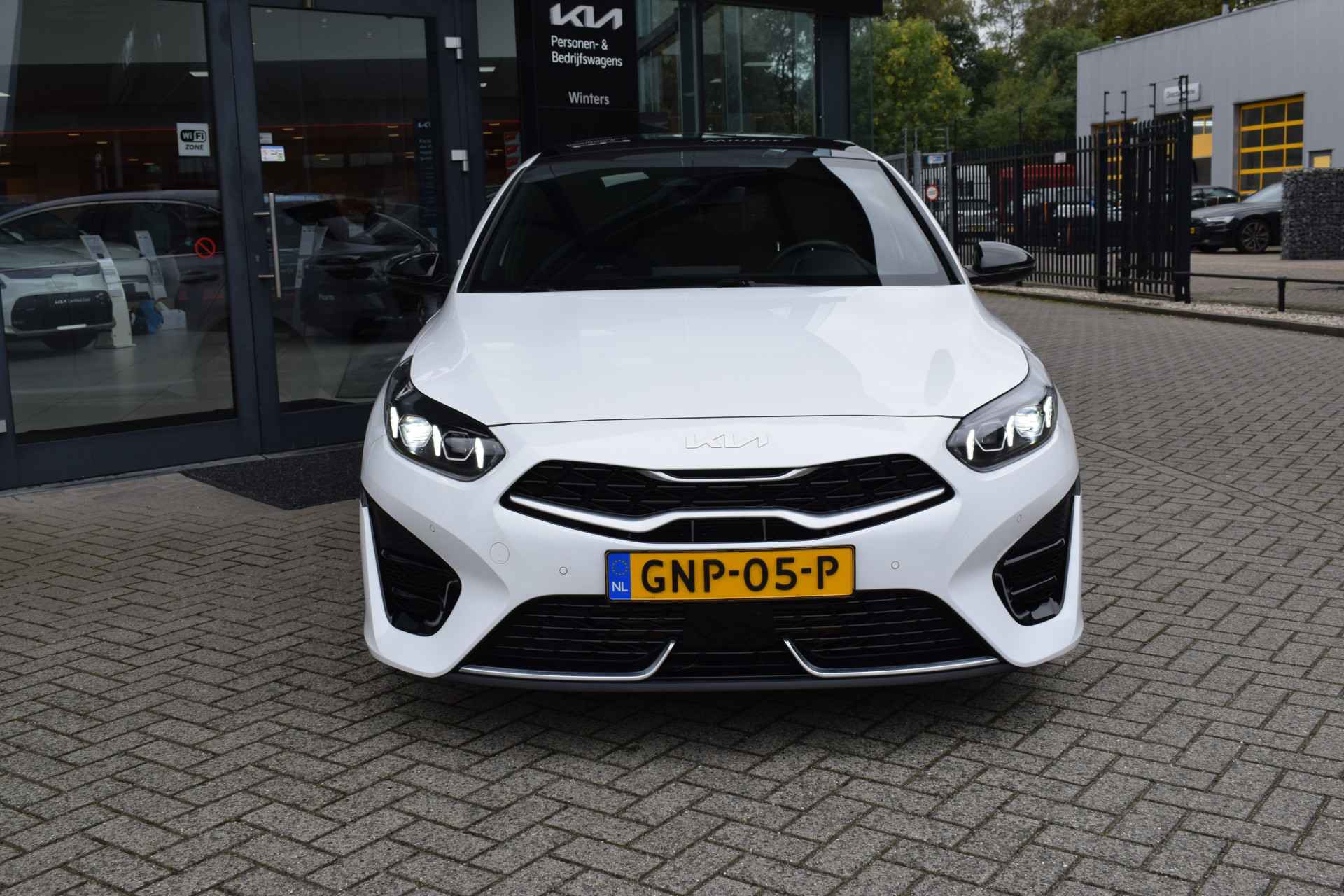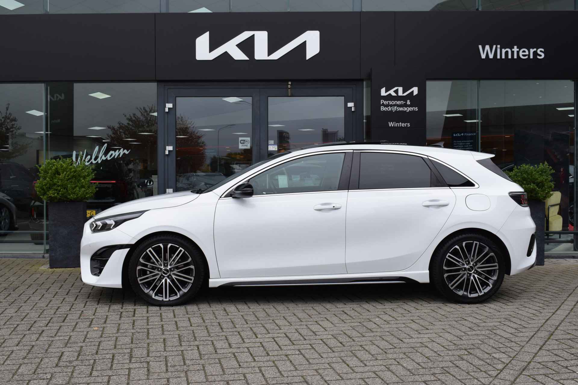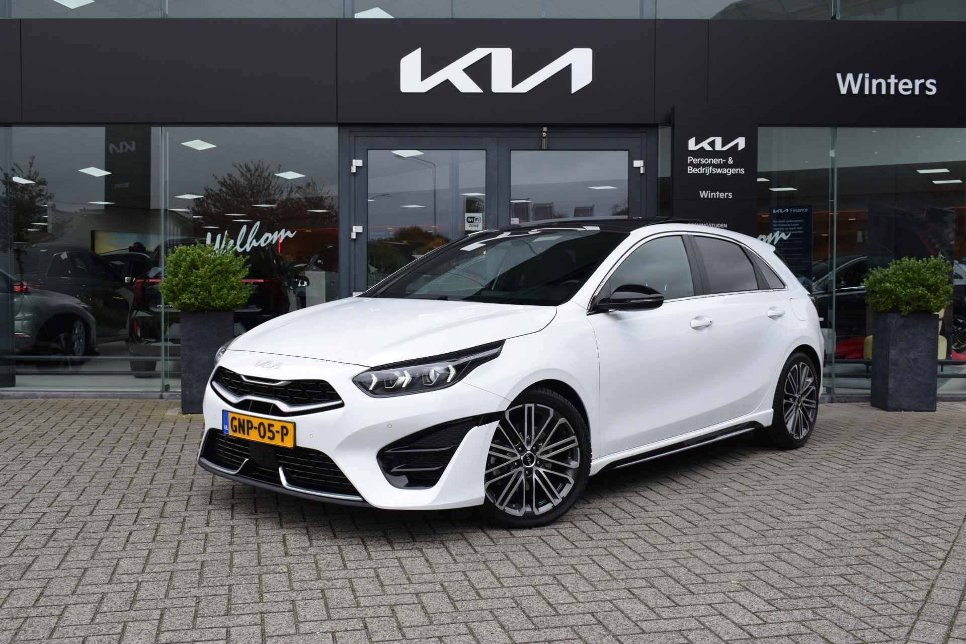 Sportieve Ceed Hatchback 1.5 T-GDi GT-PlusLine o.a. met ECC-Airco, Cruise control Adaptief, Speed Limiter, Navigatie, Achteruitrijcamera, Bluetooth, 7-Traps automaat, Armsteunen, Electrisch inklapbare buitenspiegels, Electrisch verstelbare Sportstoel + Memory, Deels neerklapbare achterbank, Privacy Glas, Electrisch Panoramadak, Keyless Entry met start/stop-button, LED verlichting, 18" LMV, Parkeersensoren en Tot 10Jr. Kia-Garantie t/m 3-10-2034. Verkoopprijs € 33.385,- incl. Basis Service-pakket. Rijklaarprijs € 33.980,- incl. FullService-afleverpakket van € 595,-.