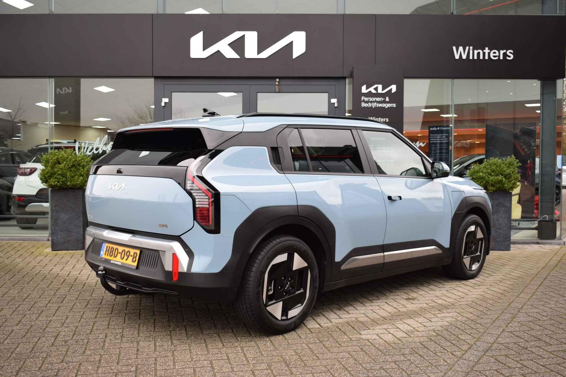 Jonge en ruime EV3 58,3kWh PLUS o.a. met Hoge instap, ECC-Airco, Adaptieve cruise control met navigatieondersteuning, Full map navigatie met Kia Connect, Achteruitrijcamera, Draadloze oplader voor smartphone, Stoel- en stuurwielverwarming, Dodehoekassistentie, Kruisend verkeersassistentie achter, Privacy Glas, 17" lichtmetalen velgen, Parkeersensoren voor en achter, Trekhaak Afneembaar en Tot 10Jr. Kia-Garantie t/m 31-01-2035. Verkoopprijs € 34.395,- incl. Basis Service-pakket. Rijklaarprijs € 34.990,- incl. FullService-afleverpakket van € 595,-.