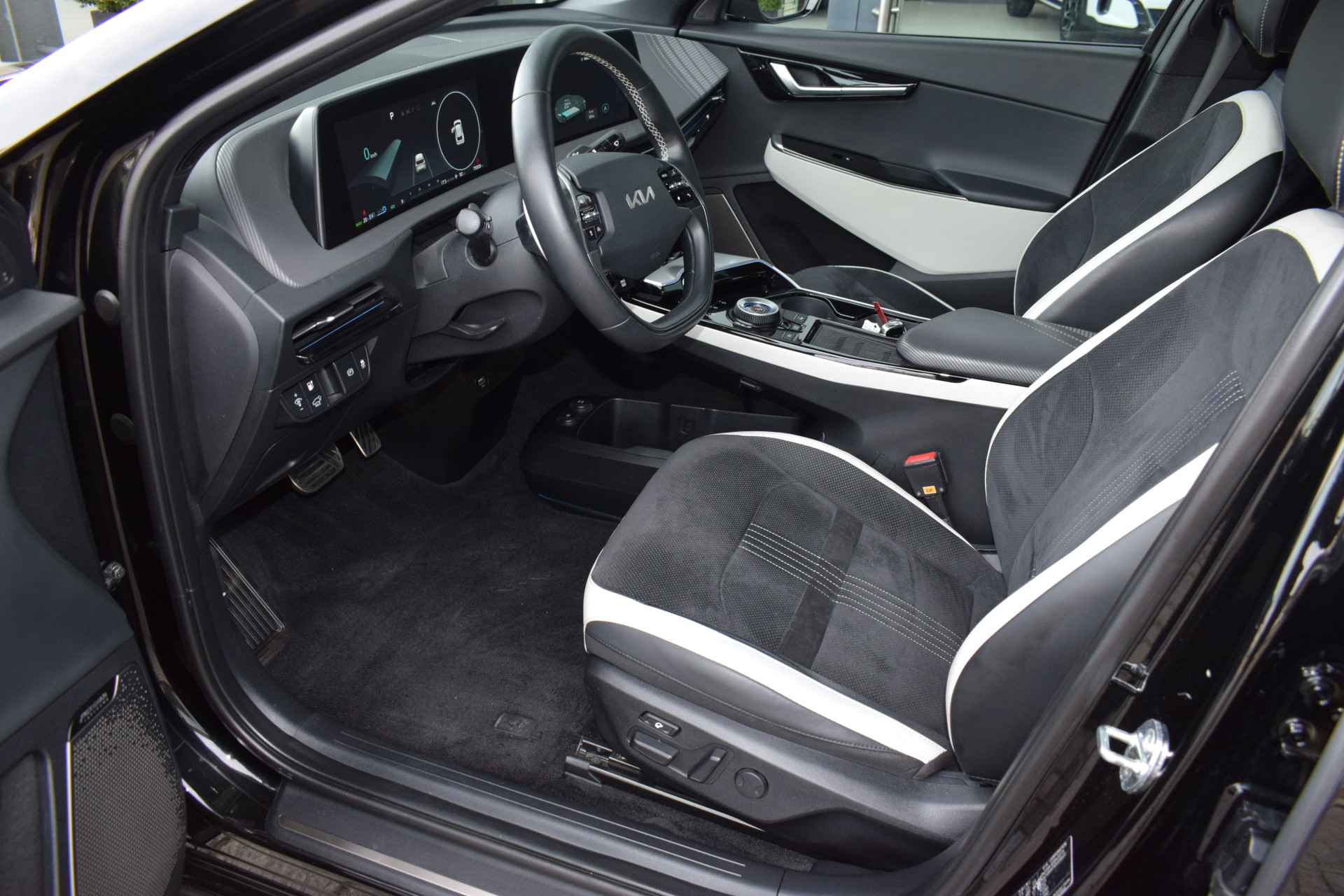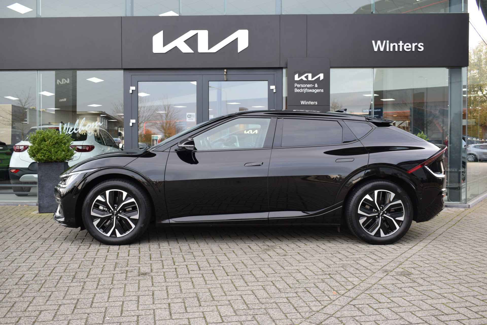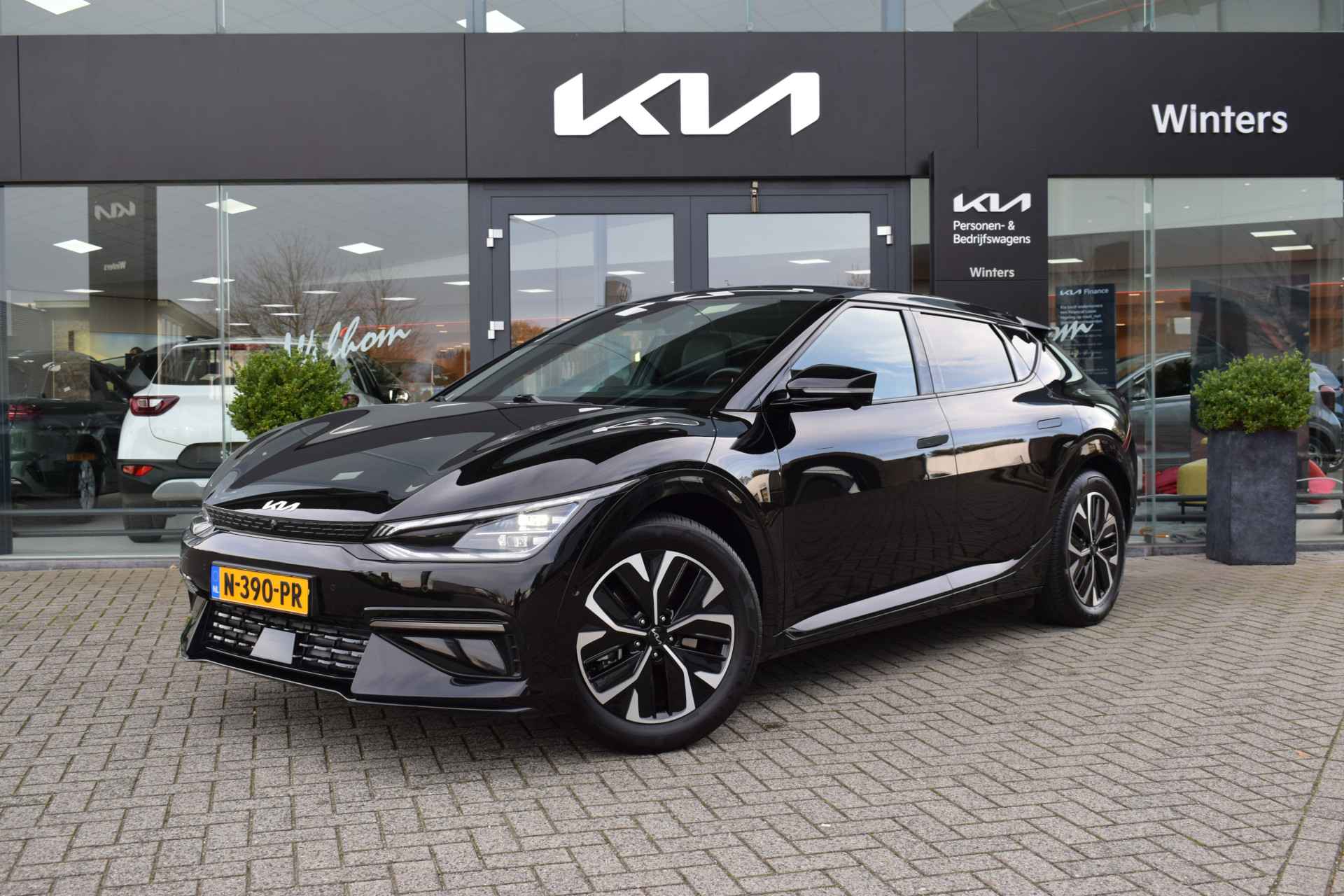 Sportieve, ruime en complete EV6 77,4kWh GT-Line o.a. voorzien van ECC-Airco, Cruise control Adaptief, Dodehoekassistentie, Kruisend verkeer Achter, 360-Camera, Achteruitrij Camera, Bluetooth, Head Up display, Glazen Schuif/kantel-dak, Stoelverwarming, Stoelventilatie, Stuurverwarming, Privacy glas, Keyless Entry met start/stop-button, GT-Line bumpers, 19" LMV, Trekhaak afneembaar, een Trekvermogen van 1.600kg en Tot 10Jr. Kia Garantie t/m 3-12-2031. Verkoopprijs € 32.855,- incl. Basis Service-pakket. Rijklaarprijs € 33.450,- incl. FullService-afleverpakket van € 595,-.