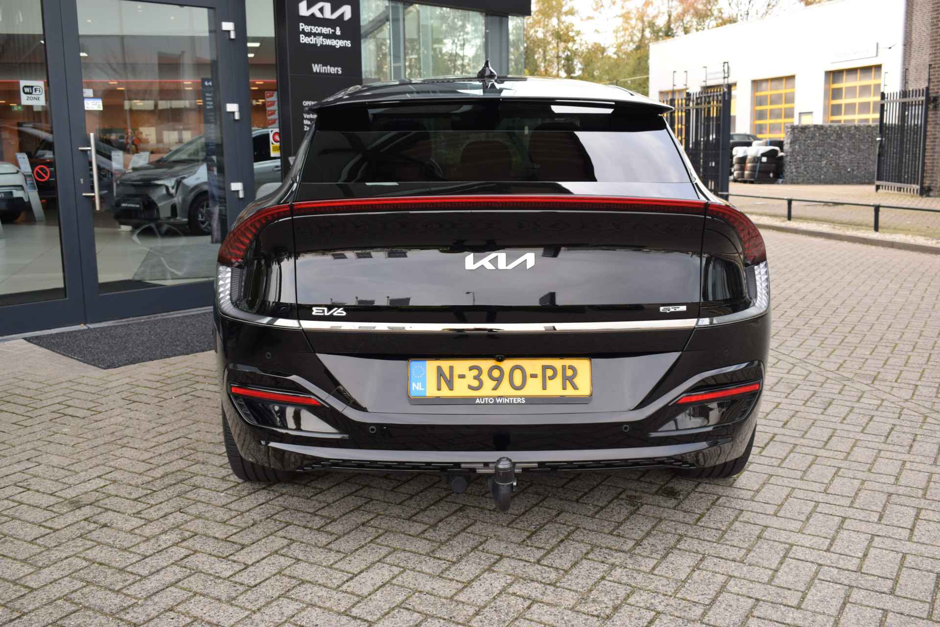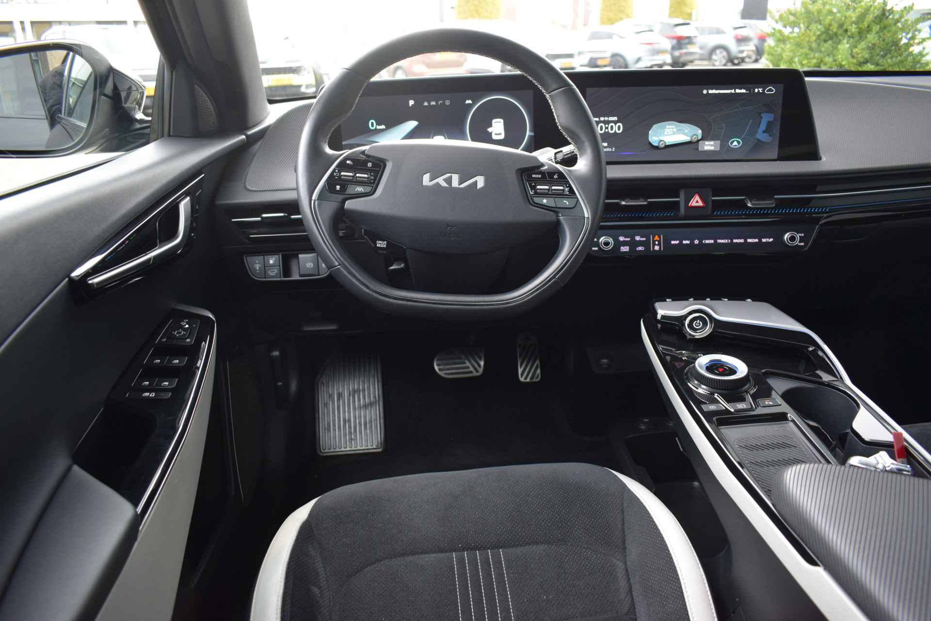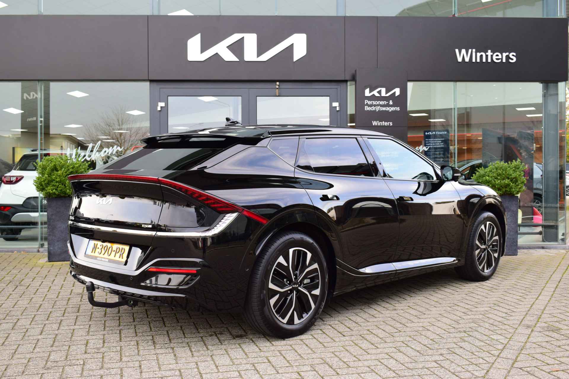 Sportieve, ruime en complete EV6 77,4kWh GT-Line o.a. voorzien van ECC-Airco, Cruise control Adaptief, Dodehoekassistentie, Kruisend verkeer Achter, 360-Camera, Achteruitrij Camera, Bluetooth, Head Up display, Glazen Schuif/kantel-dak, Stoelverwarming, Stoelventilatie, Stuurverwarming, Privacy glas, Keyless Entry met start/stop-button, GT-Line bumpers, 19" LMV, Trekhaak afneembaar, een Trekvermogen van 1.600kg en Tot 10Jr. Kia Garantie t/m 3-12-2031. Verkoopprijs € 32.855,- incl. Basis Service-pakket. Rijklaarprijs € 33.450,- incl. FullService-afleverpakket van € 595,-.