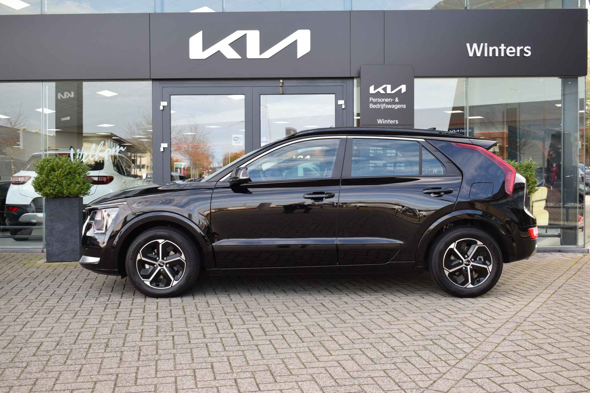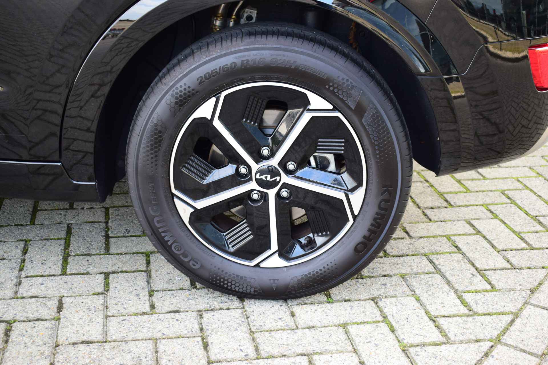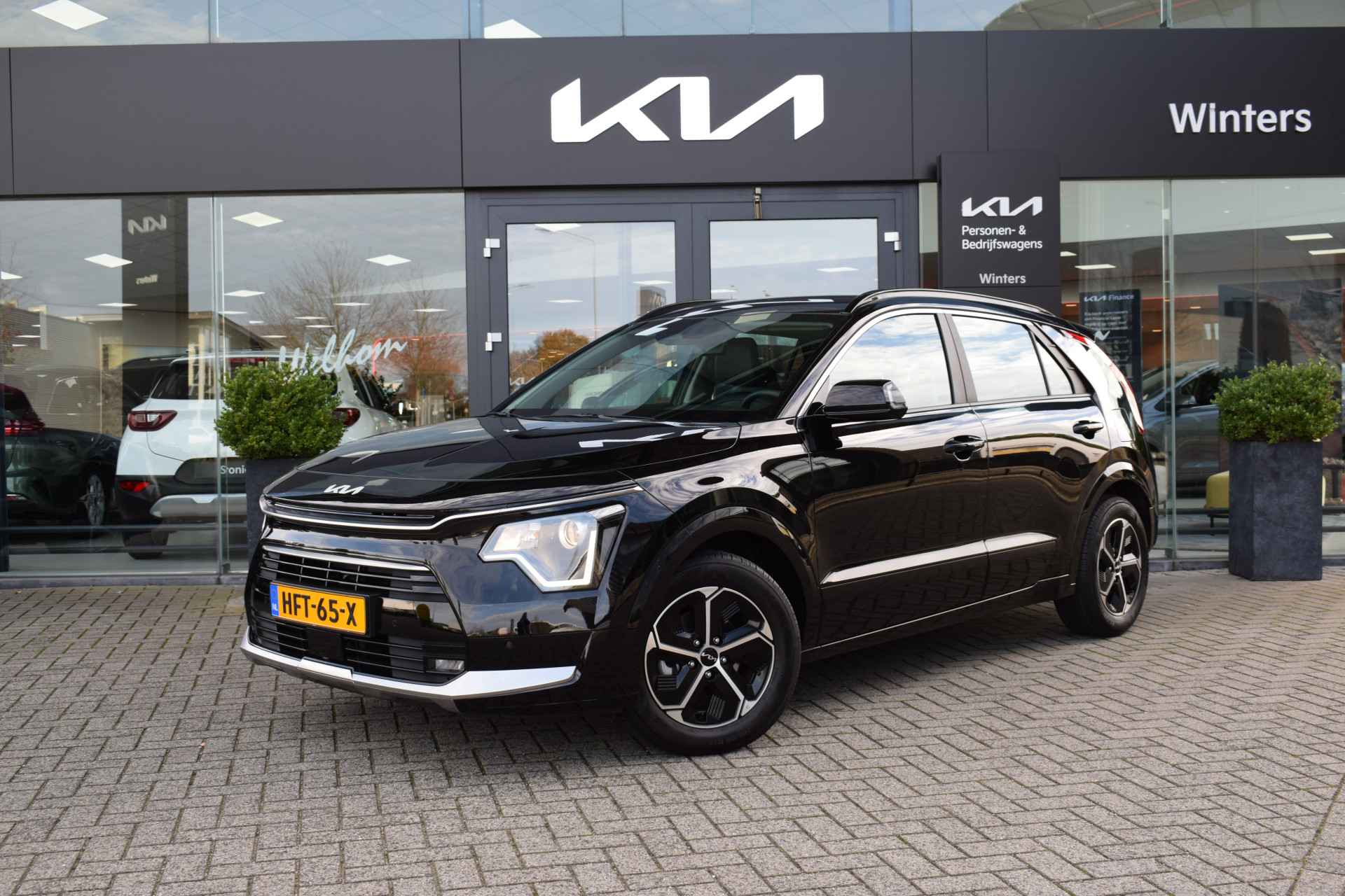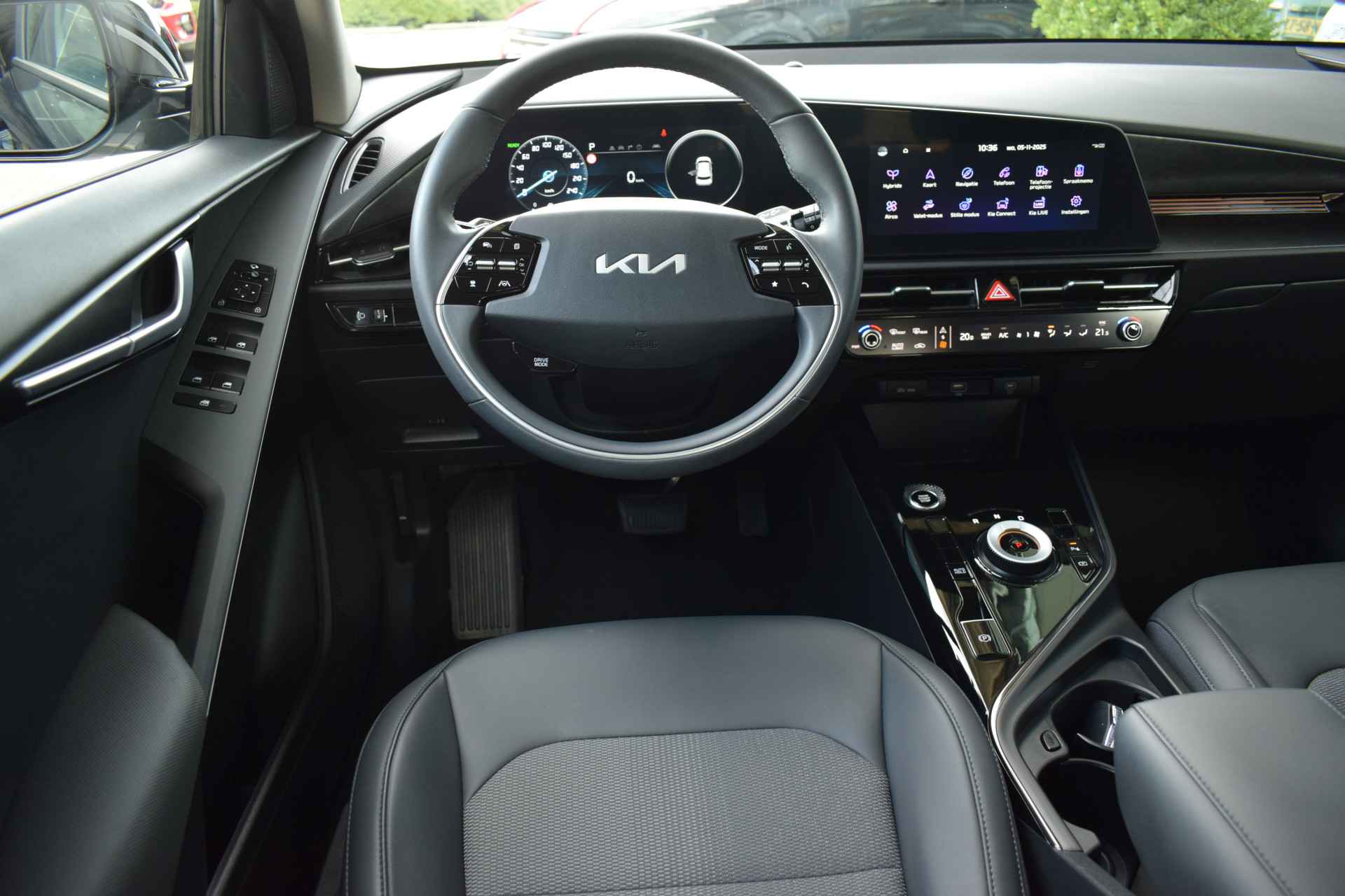 Jonge en ruime Kia Niro Hybrid DynamicLine o.a. met Hogere instap, DCT6-Automaat, ECC-Airco, Cruise control Adaptief, 10.25"Navigatie, Achteruitrijcamera, Bluetooth, Armsteunen, Leder/stof bekleding, Keyless Entry met start/stop-button, 16"LMV, Parkeersensoren voor + achter en Tot 10Jr. Kia-Garantie t/m 28-2-2035. Verkoopprijs € 33.895,- incl. Basis Service-pakket. Rijklaarprijs € 34.490,- incl. FullService-afleverpakket van € 595,-