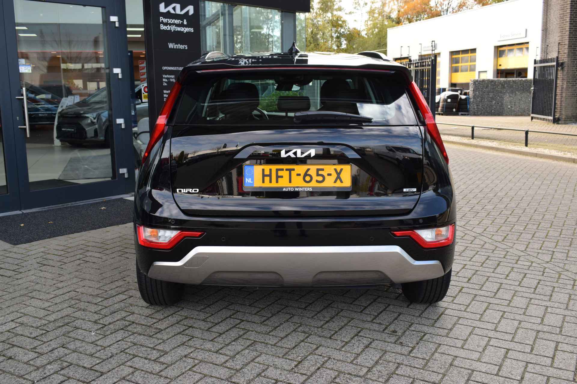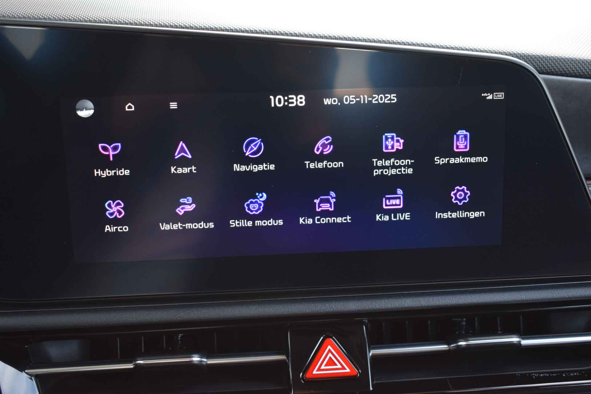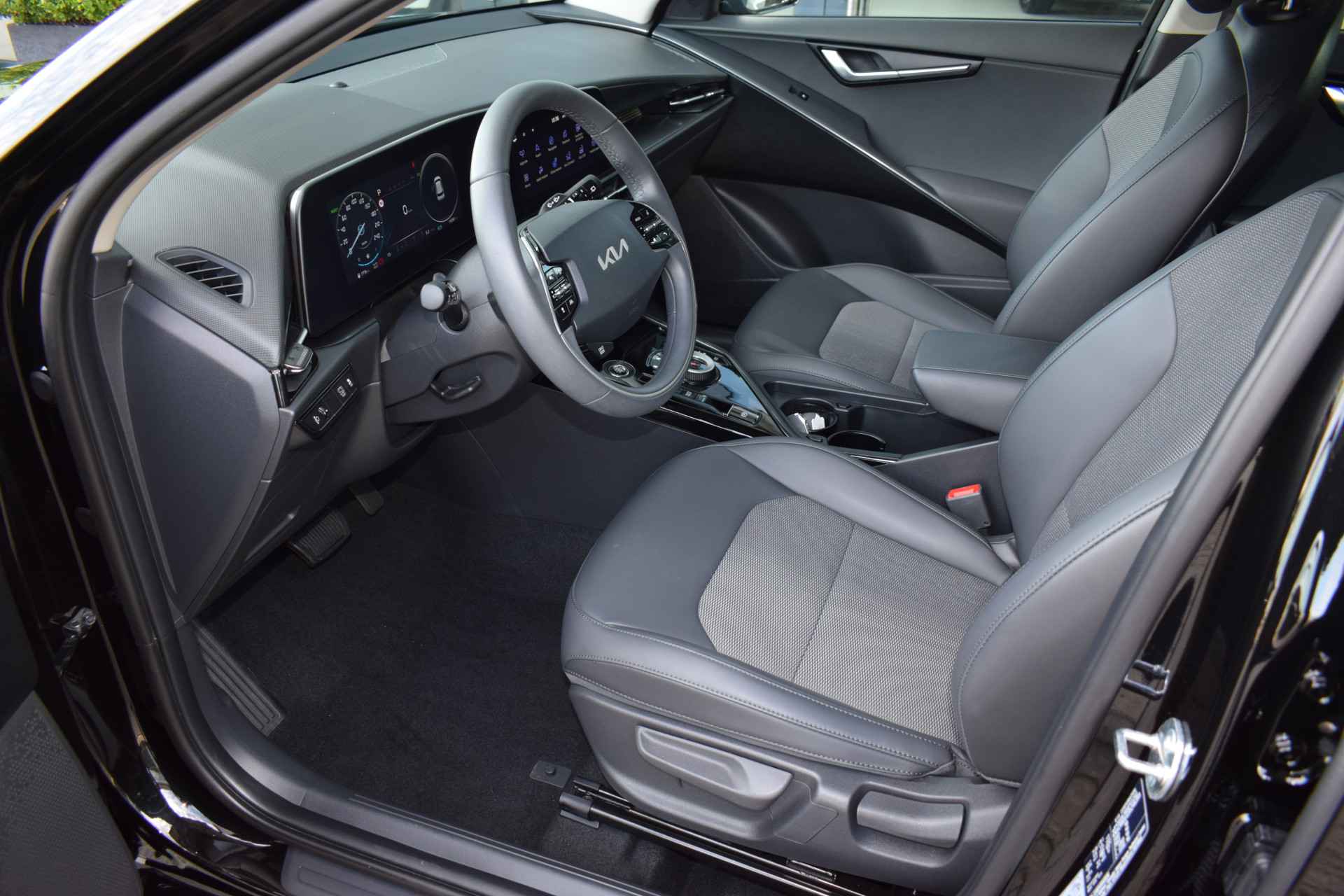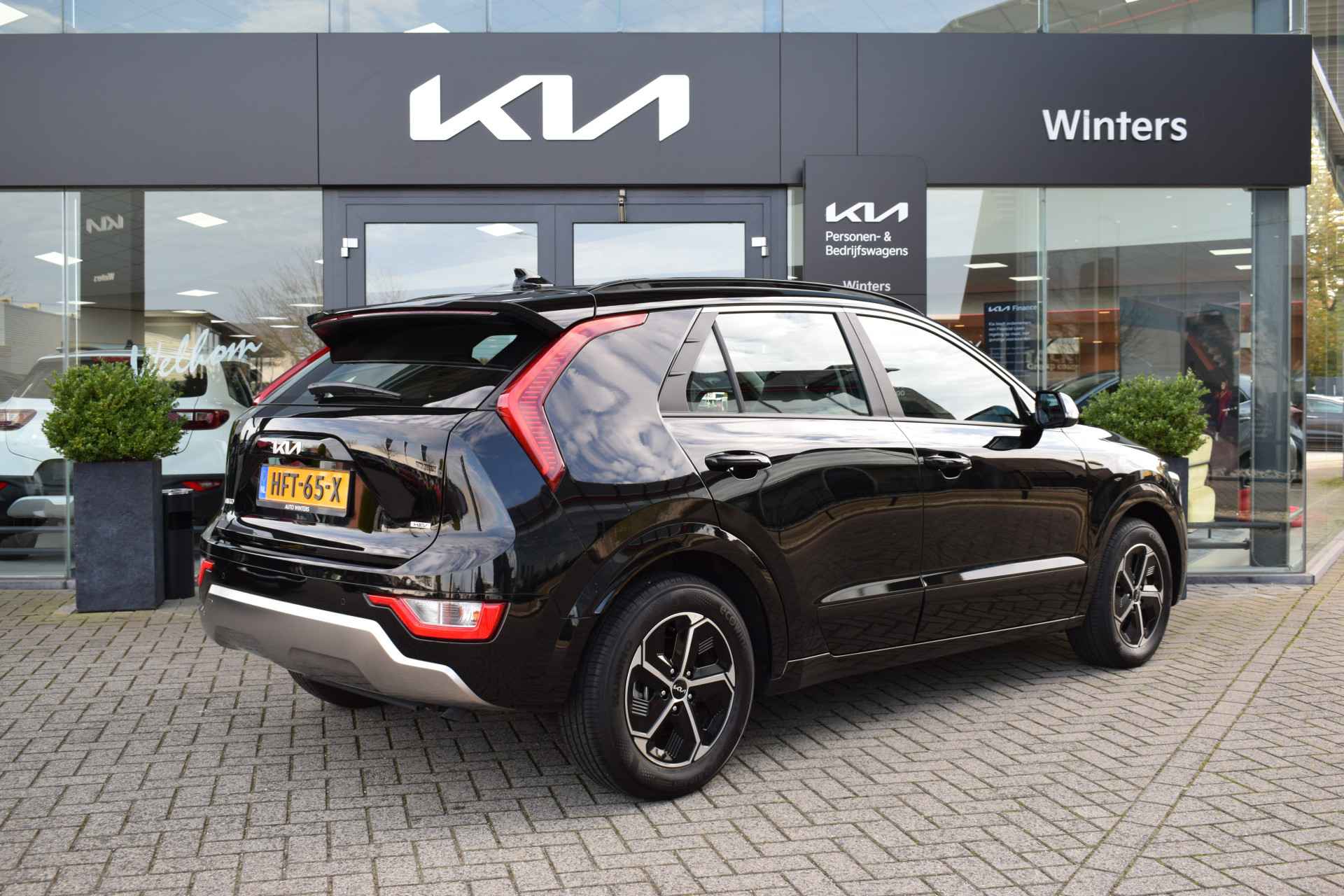 Jonge en ruime Kia Niro Hybrid DynamicLine o.a. met Hogere instap, DCT6-Automaat, ECC-Airco, Cruise control Adaptief, 10.25"Navigatie, Achteruitrijcamera, Bluetooth, Armsteunen, Leder/stof bekleding, Keyless Entry met start/stop-button, 16"LMV, Parkeersensoren voor + achter en Tot 10Jr. Kia-Garantie t/m 28-2-2035. Verkoopprijs € 33.895,- incl. Basis Service-pakket. Rijklaarprijs € 34.490,- incl. FullService-afleverpakket van € 595,-