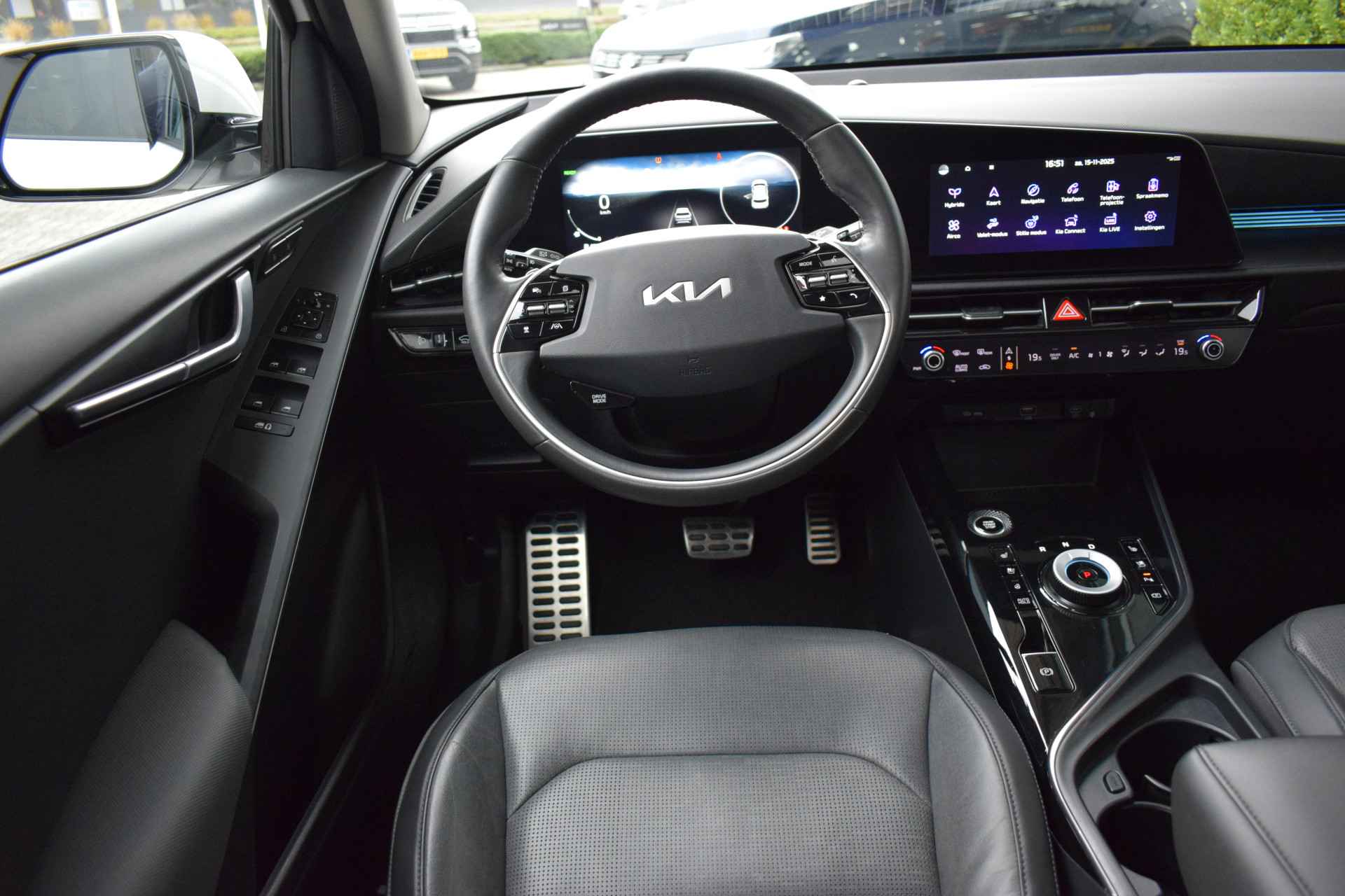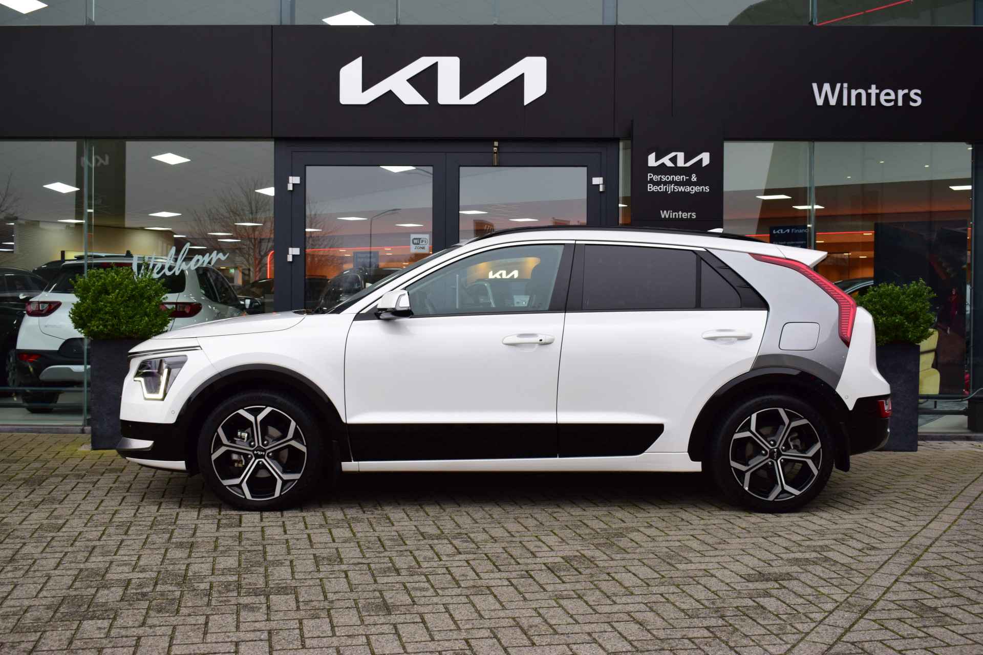 Ruime en complete Niro HEV/Hybrid ExecutiveLine o.a. met Hogere instap, DCT6-Automaat, ECC-Airco, Cruise control Adaptief, Navigatie, Achteruitrijcamera, Bluetooth, Armsteunen, Lederen bekleding, Stoelverwarming, Stuurverwarming, Schuif/kantel-dak, Privacy glas, Keyless Entry met start/stop-button, 18"LMV, Electrische Achterklep, Parkeersensoren voor + achter, Trekhaak, een Trekvermogen van 1.300kg en Tot 10Jr. Kia-Garantie t/m 25-11-2032. Verkoopprijs € 29.385,- incl. Basis Service-pakket. Rijklaarprijs € 29.980,- incl. FullService-afleverpakket van € 595,-.