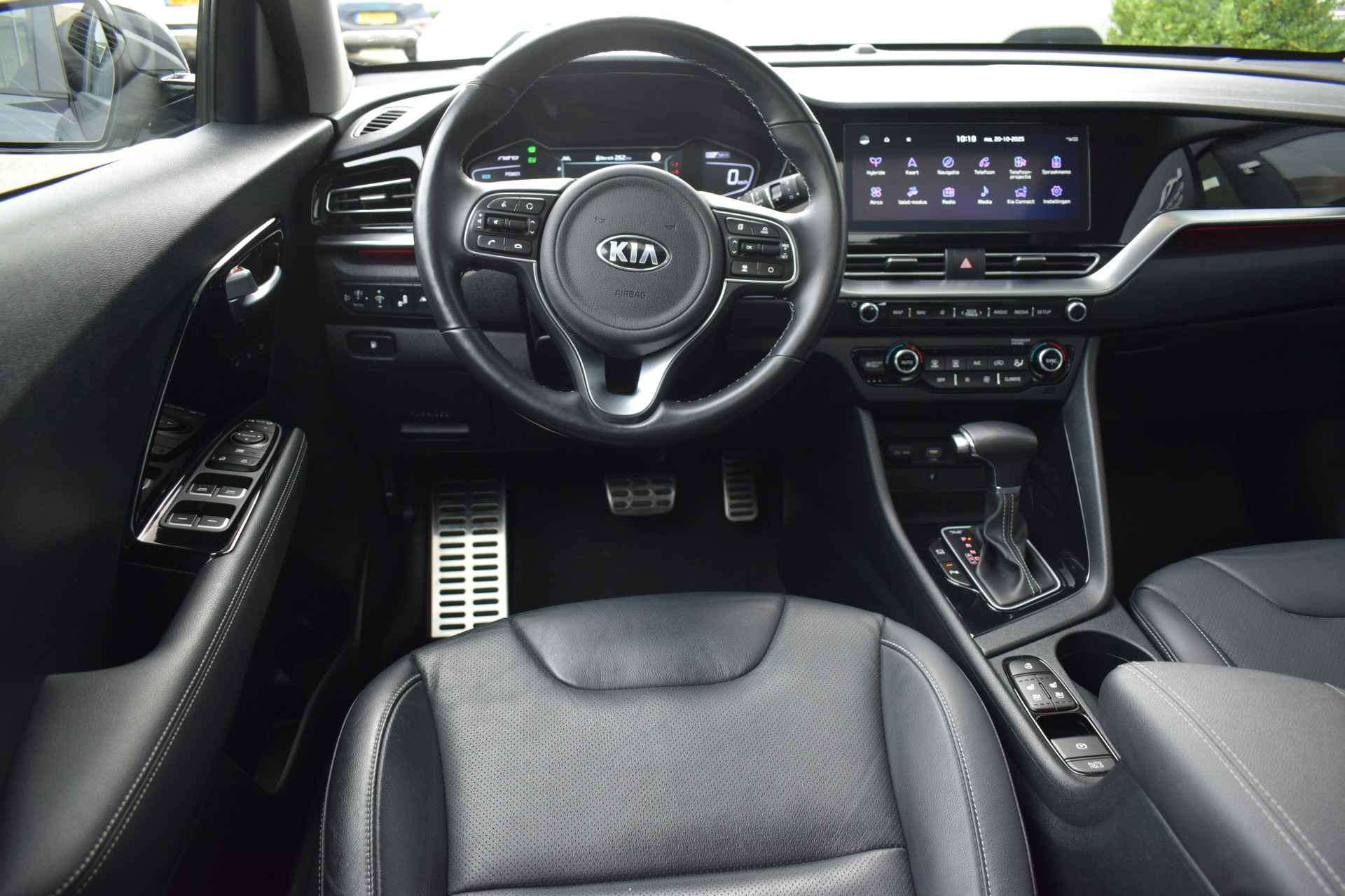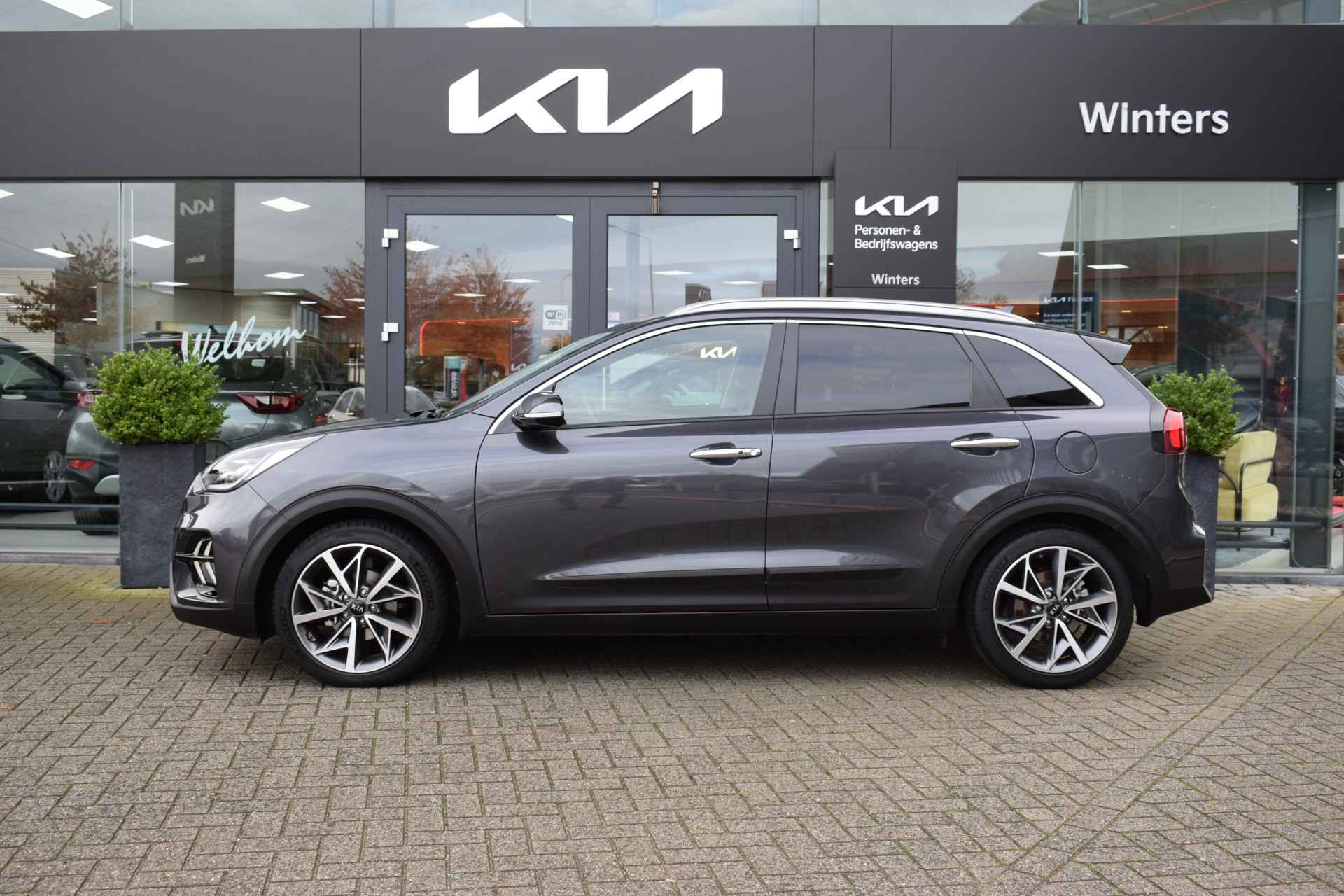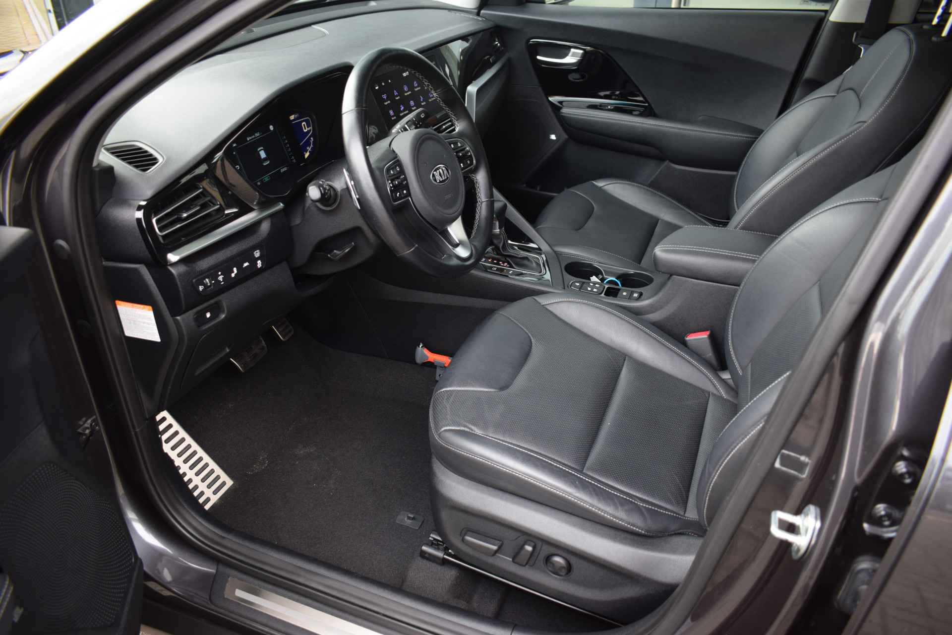 Ruime en complete Niro Hybrid 1.6i ExecutiveLine o.a. met Hogere instap, DCT6 Automaat, ECC-Airco, Cruise control Adaptief, Speed Limiter, Lane Keep Assist, Dodehoekherkenning, Armsteunen, 10,25" Navigatie, Achteruitrijcamera, Bluetooth, JBL Audio-systeem, DAB+, UVO-Connect, Electrisch inklapbare buitenspiegels, Leder, Stoelverwarming - + Ventilatie, Stuurverwarming, Electrisch verstelbare bestuurdersstoel + Memory, Hoogte verstelbare bijrijdersstoel, Deels neerklapbare achterbank, Privacy glas, Electrisch Schuif/kantel-dak, Keyless Entry met start/stop-button, LED dagrijverlichting, Wielkastverbreders, 16" LMV, Parkeersensoren voor + achter, Trekhaak Afneembaar, een Trekvermogen van 1.300kg, slechts 25.432km! en Tot 10Jr. Kia-Garantie t/m 16-5-2030. Verkoopprijs € 25.885 ,- incl. Basis Service-pakket. Rijklaarprijs € 26.480,- incl. FullService-afleverpakket van € 595,-.