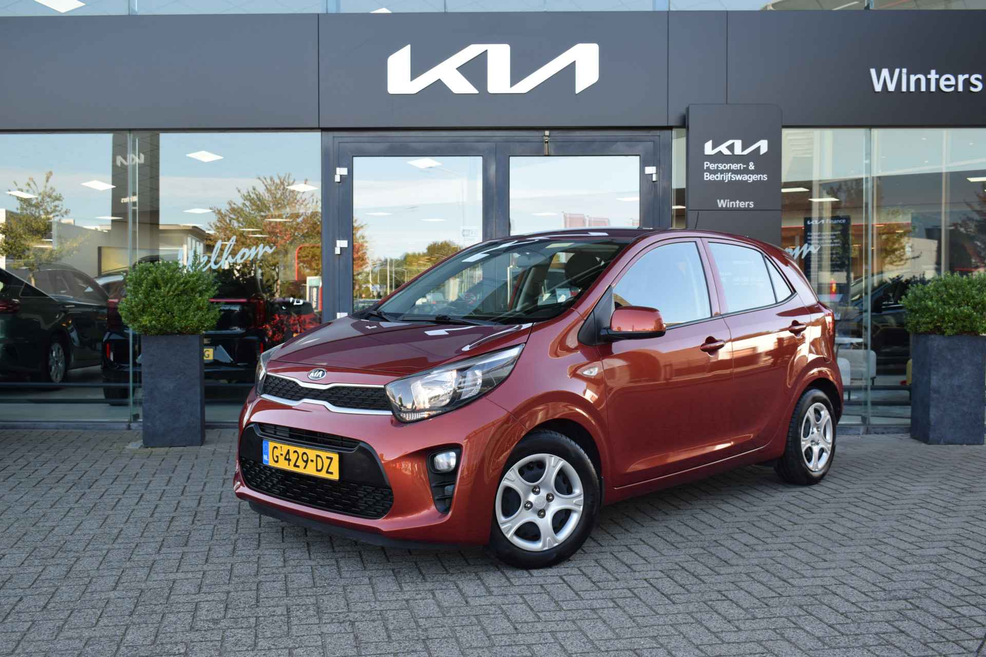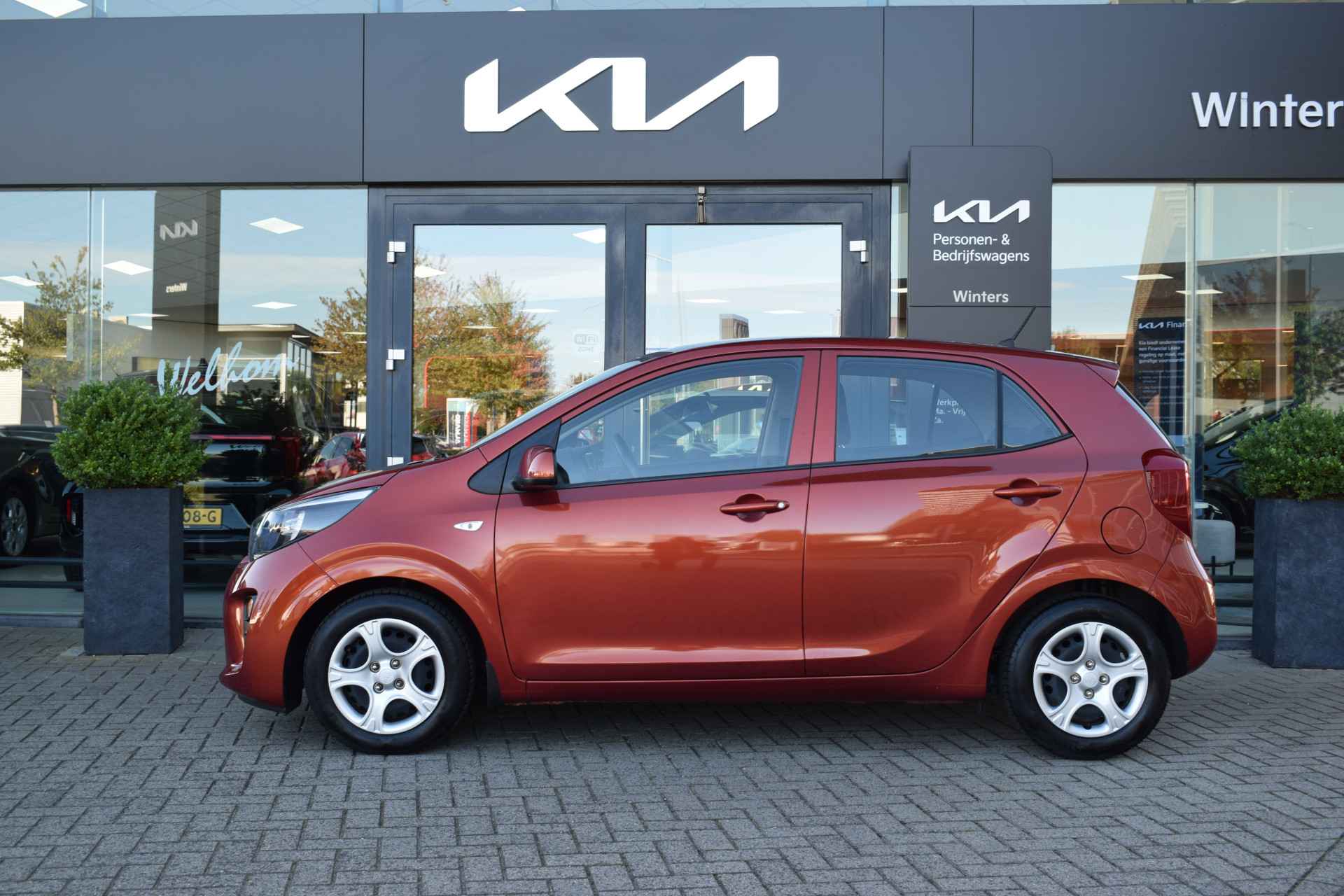 Sportieve en complete Picanto 1.0i Comfortine 5-Deurs o.a. met Airco, ABS, Airbags, Audio, Bluetooth, USB, Electrische ramen voor, Hoogte verstelbare stoel + stuur, Deels neerklapbare achterbank, Centrale vergrendeling met afstandbediening, Dealeronderhouden en Tot 10Jr Kia-Garantie t/m 4-11-2029. Verkoopprijs € 10.885,- incl. Basis Service-pakket. Rijklaarprijs € 11.480,- incl. FullService-afleverpakket van € 595,-.