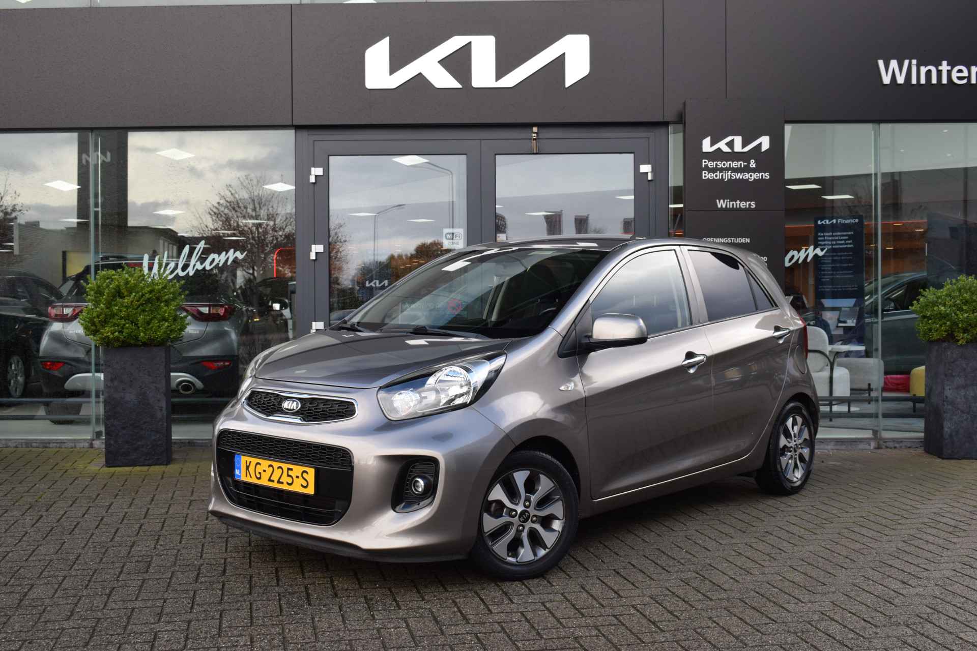 Compacte, sportieve en complete Picanto 1.0i ComfortPlusLine 5-Deurs o.a. met ECC-Airco, Cruise control, Navigatie, Achteruitrijcamera, Bluetooth, USB, Electrische ramen + spiegels, Hoogte verstelbare stoel + stuur, Deels neerklapbare achterbank, Privacy glas, Centrale vergrendeling met afstandbediening, Mistlampen, 14" LMV met All Weather banden en slechts 39.748km. Verkoopprijs € 9.995,- incl. Basis Service-pakket. Rijklaarprijs € 10.590,- incl. FullService-afleverpakket van € 595,-.