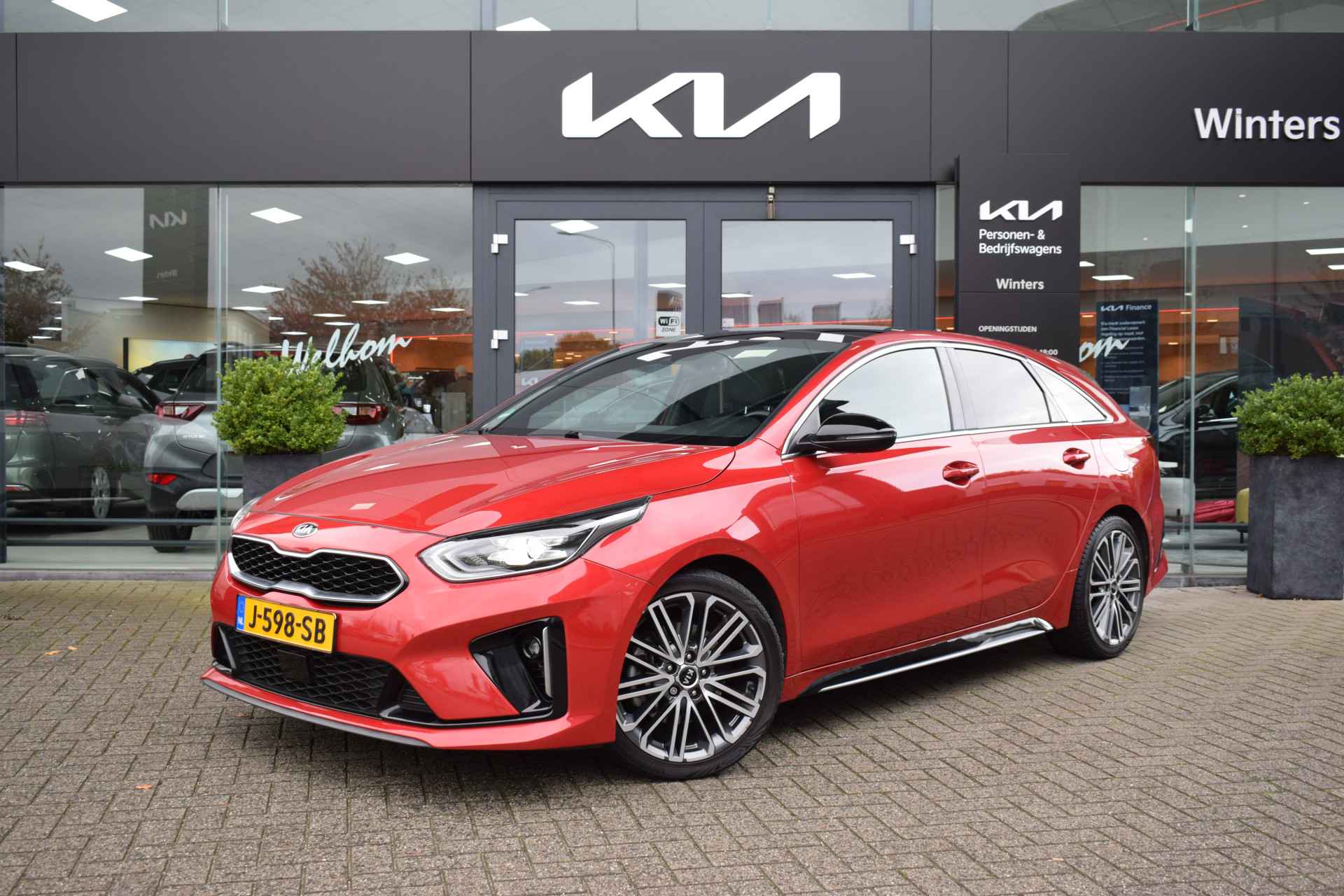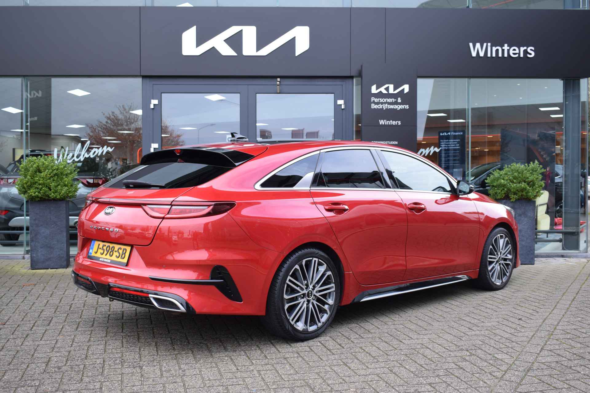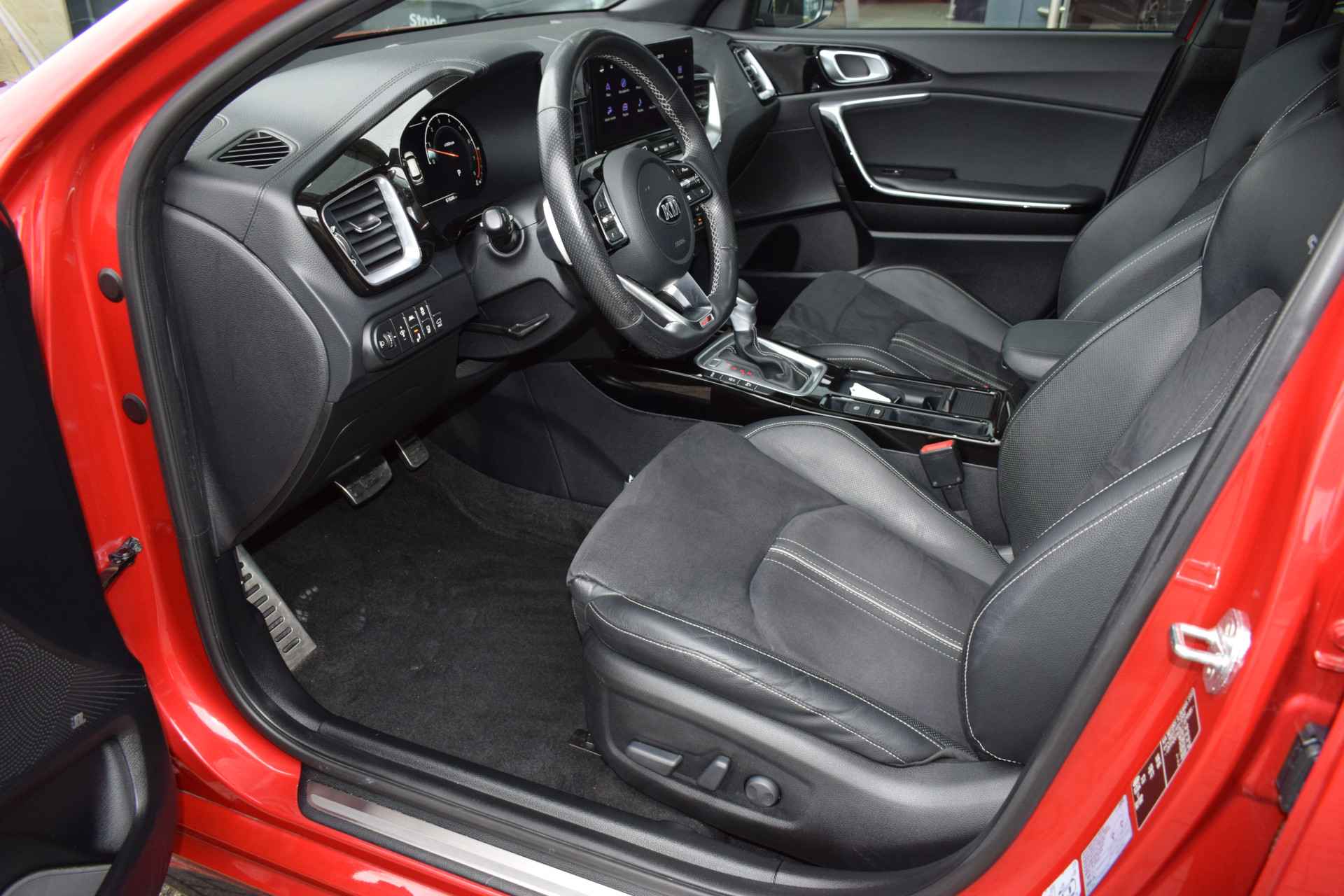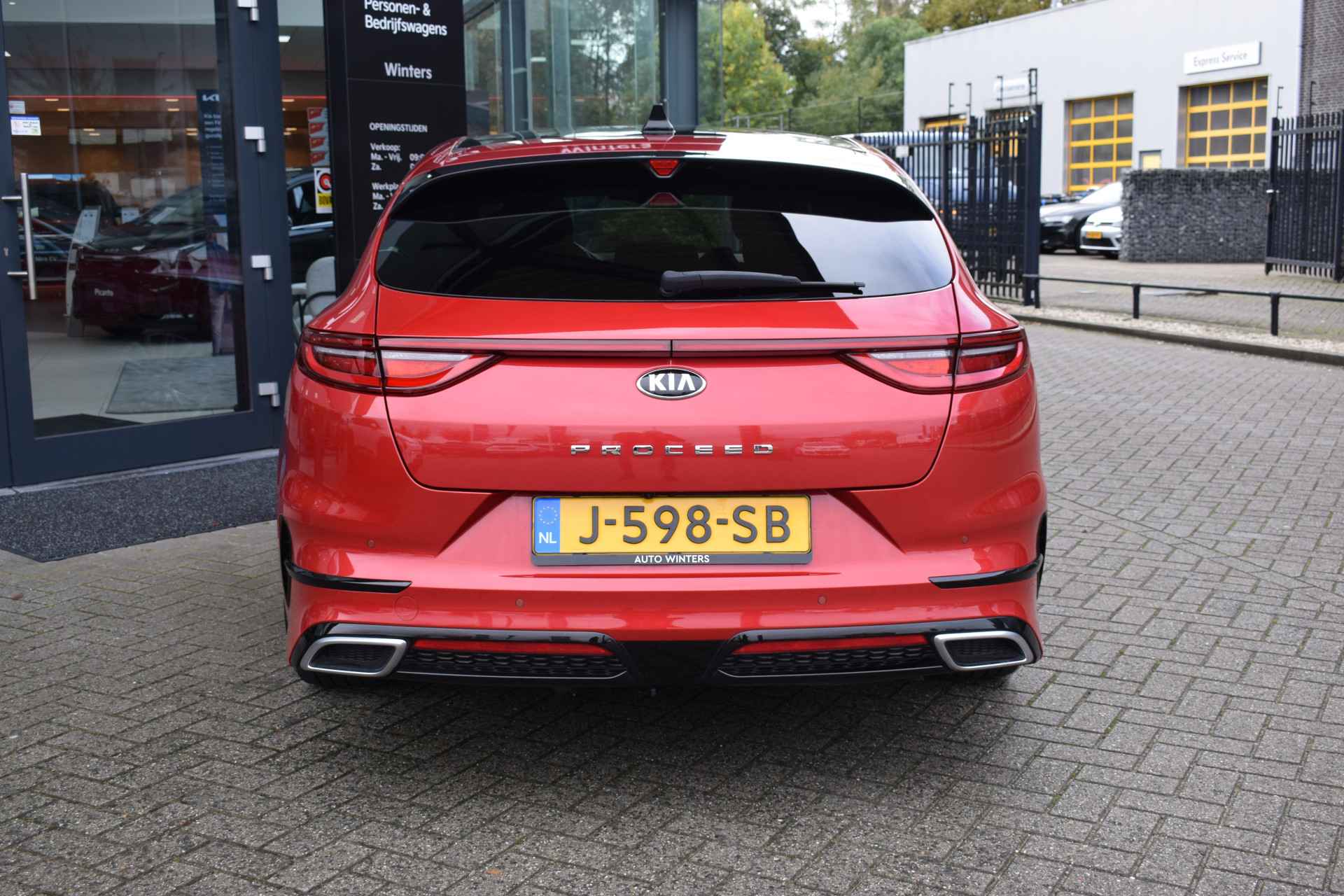 Sportieve en complete ProCeed 1.4 T-GDi/140pk GT-PlusLine o.a. voorzien van DCT7-Automaat, ECC-Airco, Cruise control Adaptief, Speed Limiter, Navigatie, Achteruitrijcamera, Bluetooth, DAB+, JBL Audio, Armsteunen, Electrisch inklapbare buitenspiegels, Electrisch verstelbare sportstoelen + stuur, Leder/alcantara, Stoelverwarming, Stuurverwarming, Deels neerklapbare achterbank, Privacy-glas, Keyless Entry met start/stop knop, 18" LMV, Trekhaak afneembaar, een Trekvermogen van 1.410kg, Parkeersensoren, Dealeronderhouden en Tot 10Jr. Kia-Garantie t/m 7-10-2030. Verkoopprijs € 23.855,- incl. Basis Service-pakket. Rijklaarprijs € 24.450,- incl. FullService-afleverpakket van € 595,-.