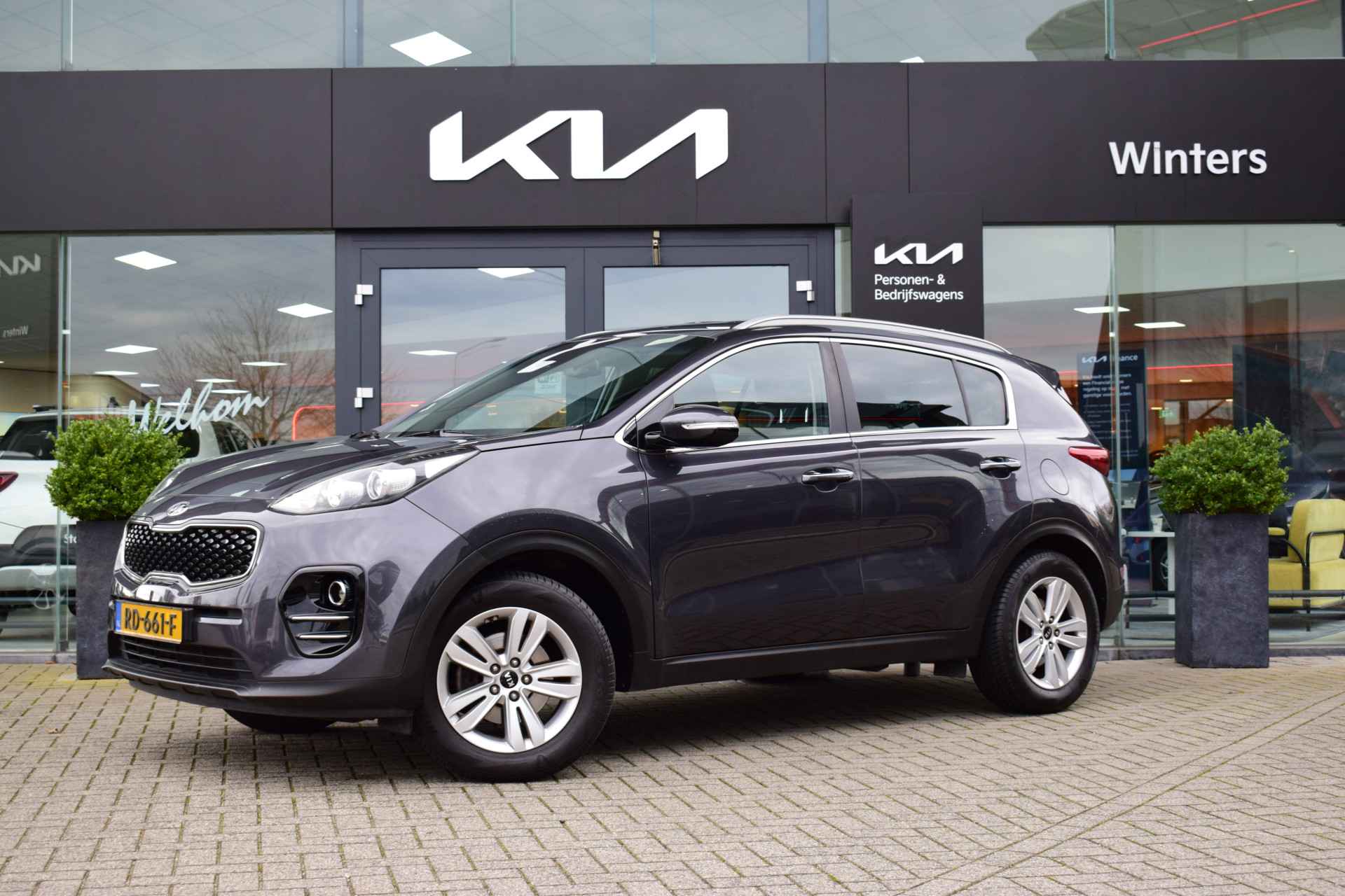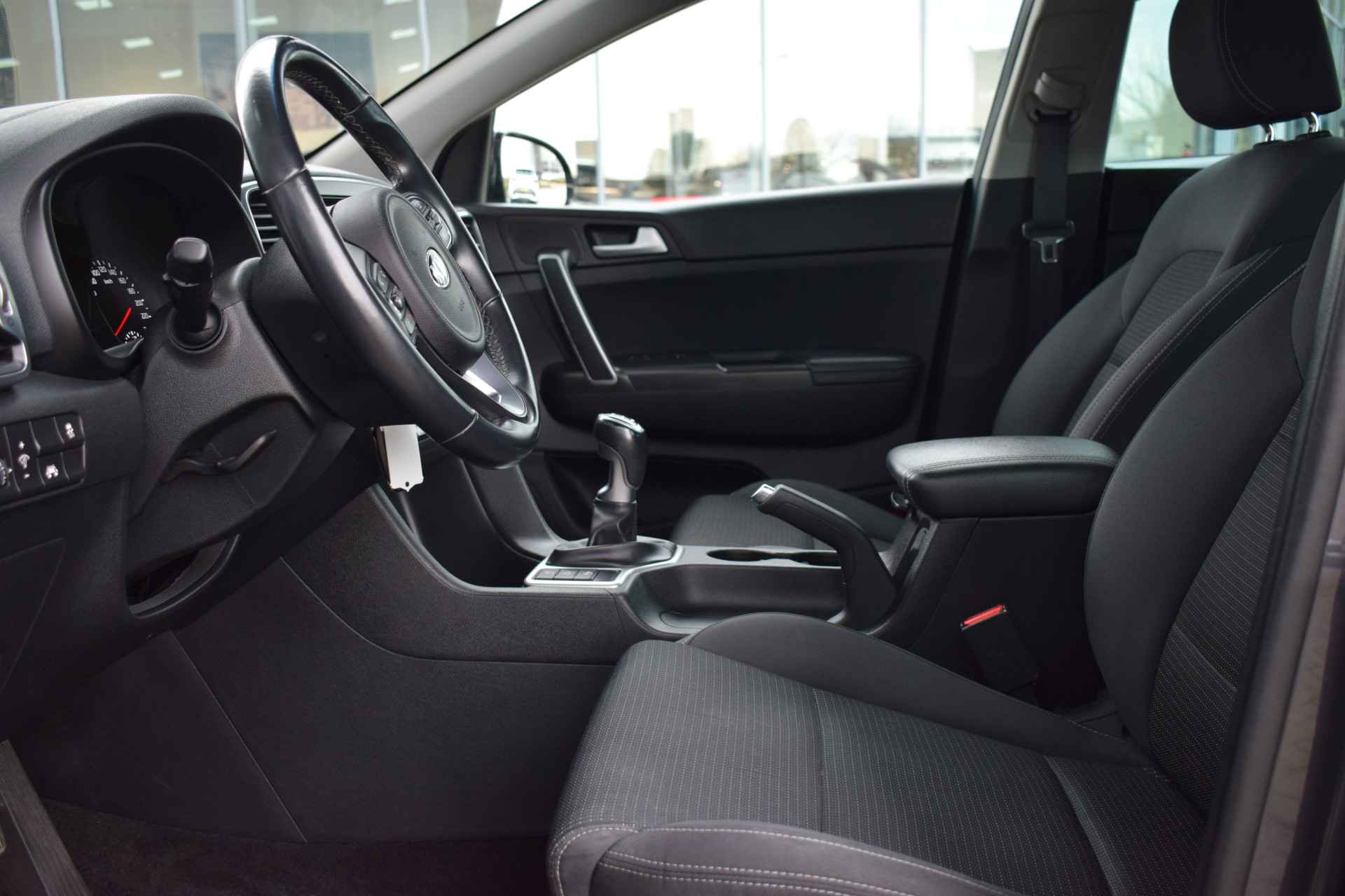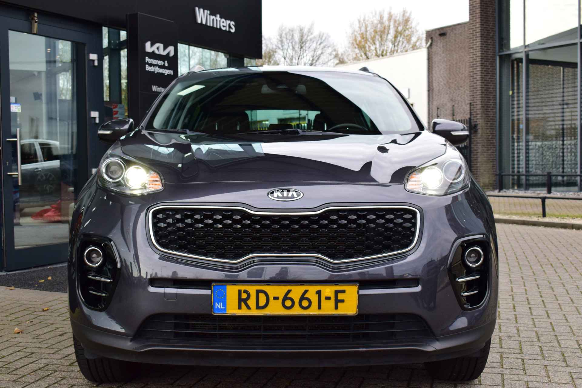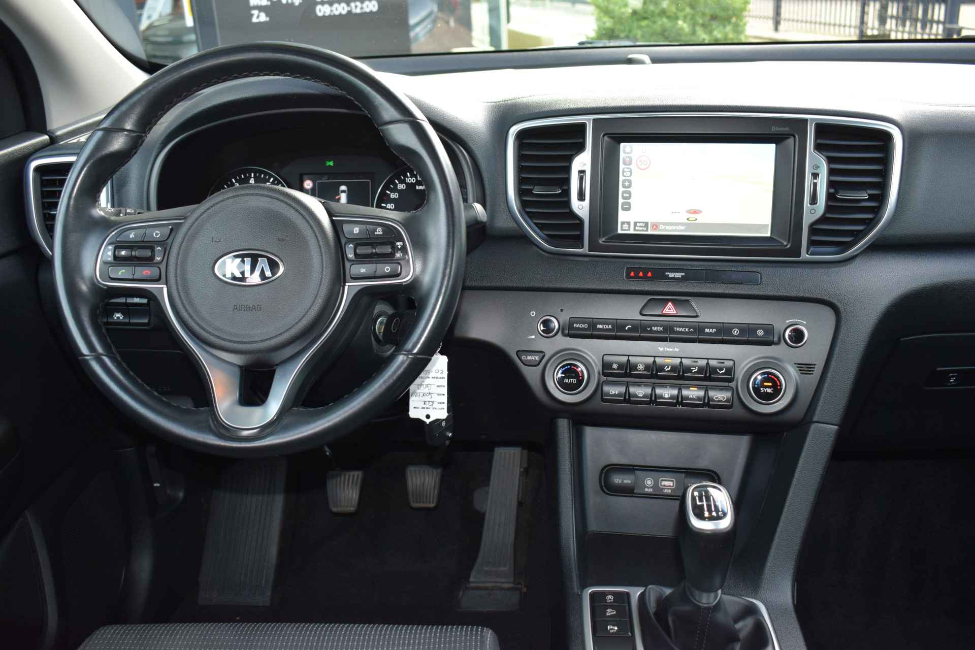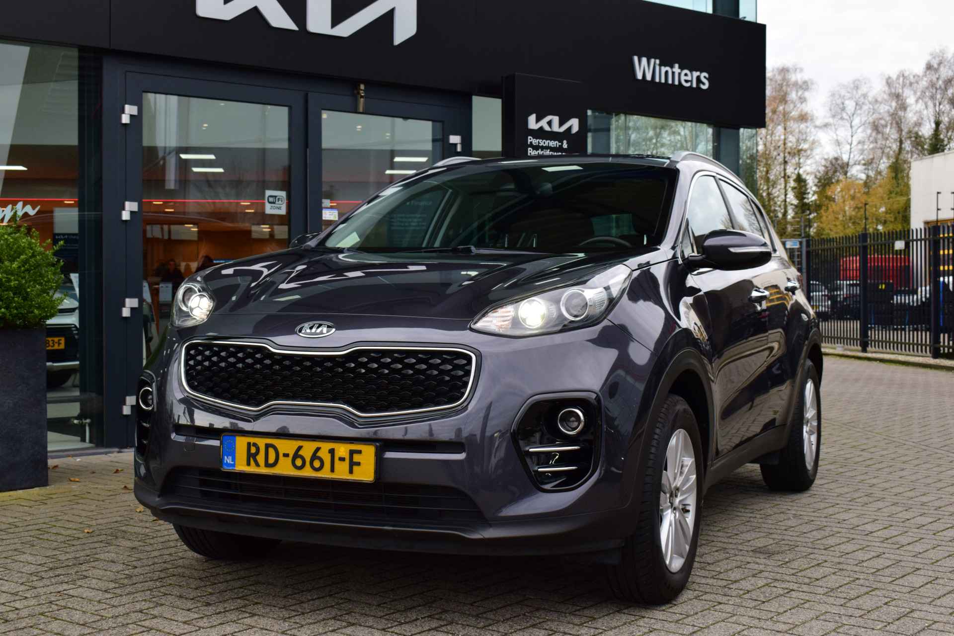 Ruime, sportieve en complete Sportage 1.6i DynamicLine o.a. met Hoge instap, ECC-Airco, Cruise control, Speed Limiter, Navigatie, Achteruitrijcamera, Bluetooth, Armsteunen, 6-bak, Electrisch inklapbare buitenspiegels, Hoogte verstelbare stoelen + stuur, Privacy Glas, Deels neerklapbare achterbank, Centrale vergrendeling met afstandbediening, Roofrails, Mistlampen, 17" LMV, Parkeersensoren, Dealeronderhouden en Tot 10Jr. Kia-Garantie t/m 30-11-2027. Verkoopprijs € 17.945,- incl. Basis Service-pakket. Rijklaarprijs € 18.540,- incl. FullService-afleverpakket van € 595,-.