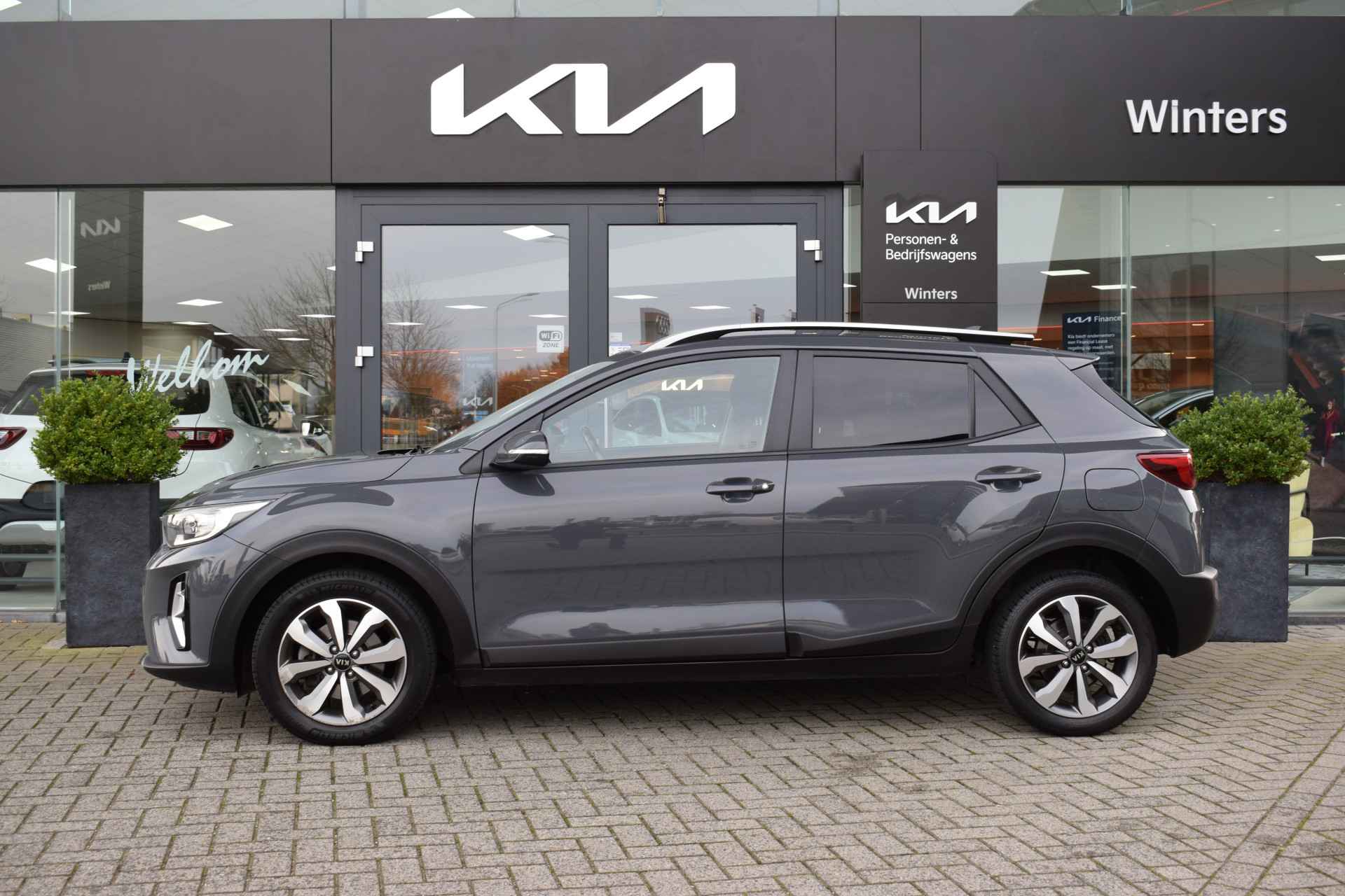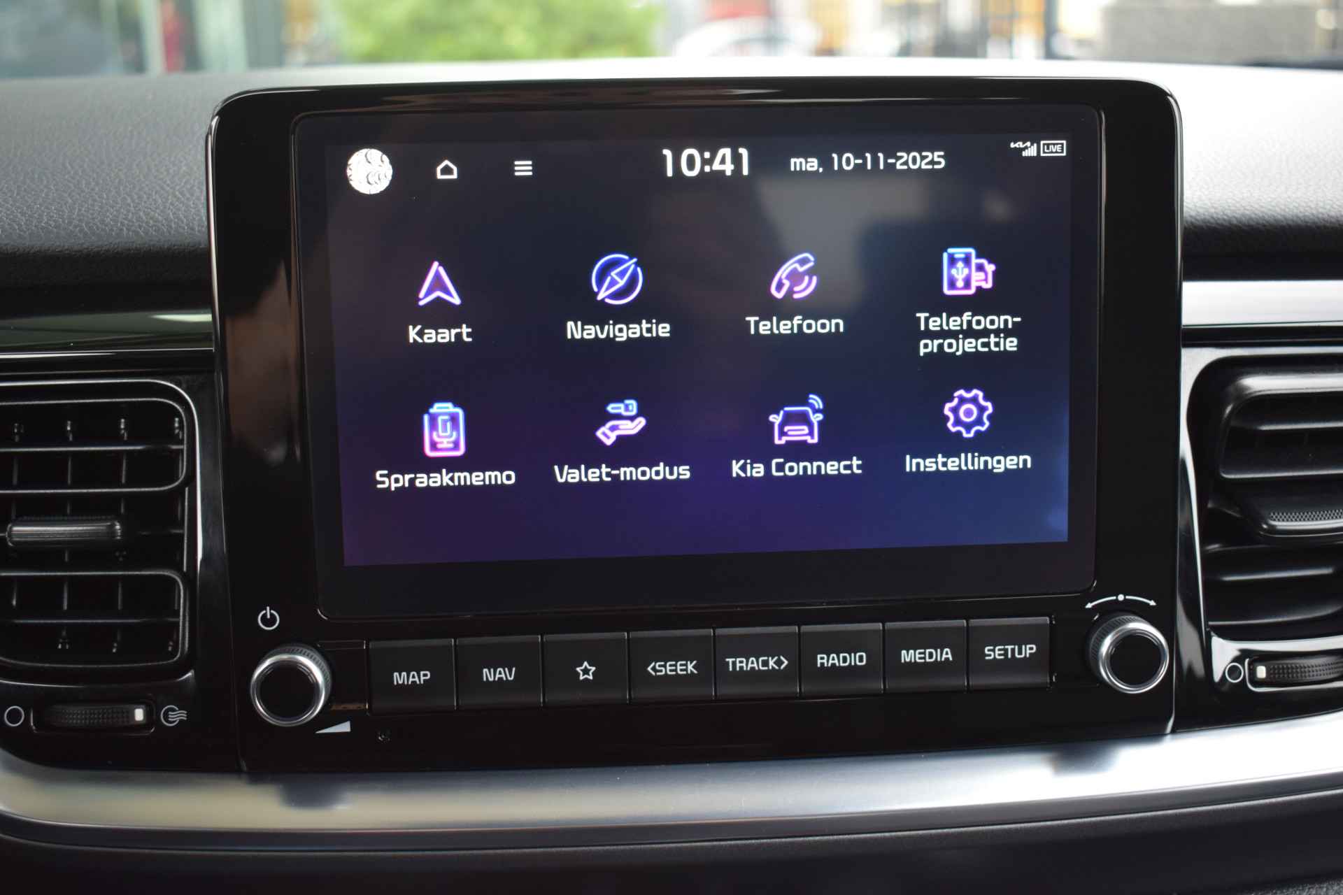 Jonge, sportieve en complete Stonic 1.0 T-GDi/100pk DynamicPlusLine o.a. met Hogere instap, ECC-Airco, Cruise control, Speed Limiter, Navigatie, Achteruitrijcamera, Bluetooth, Middenarmsteun, 6-bak, Electrische ramen + spiegels, Hoogte verstelbare stoel + stuur, Deels neerklapbare achterbank, Privacy glas, Keyless Entry met start/stop-button, LED dagrijverlichting, Mistlampen, 16" LMV, Parkeersensoren, Trekhaak, Dealeronderhouden en Tot 10Jr. Kia-Garantie t/m 2-1-2031. Verkoopprijs € 17.455,- incl. Basis Service-pakket. Rijklaarprijs € 17.950,- incl. FullService-afleverpakket van € 495,-.