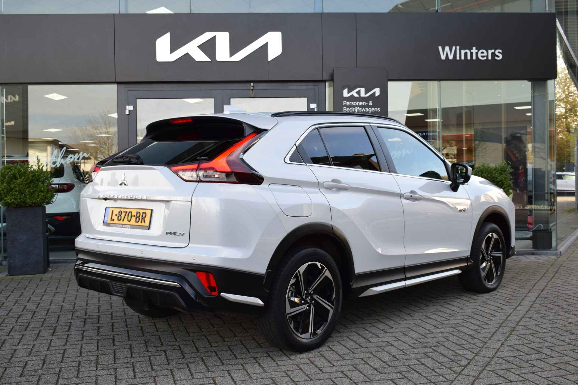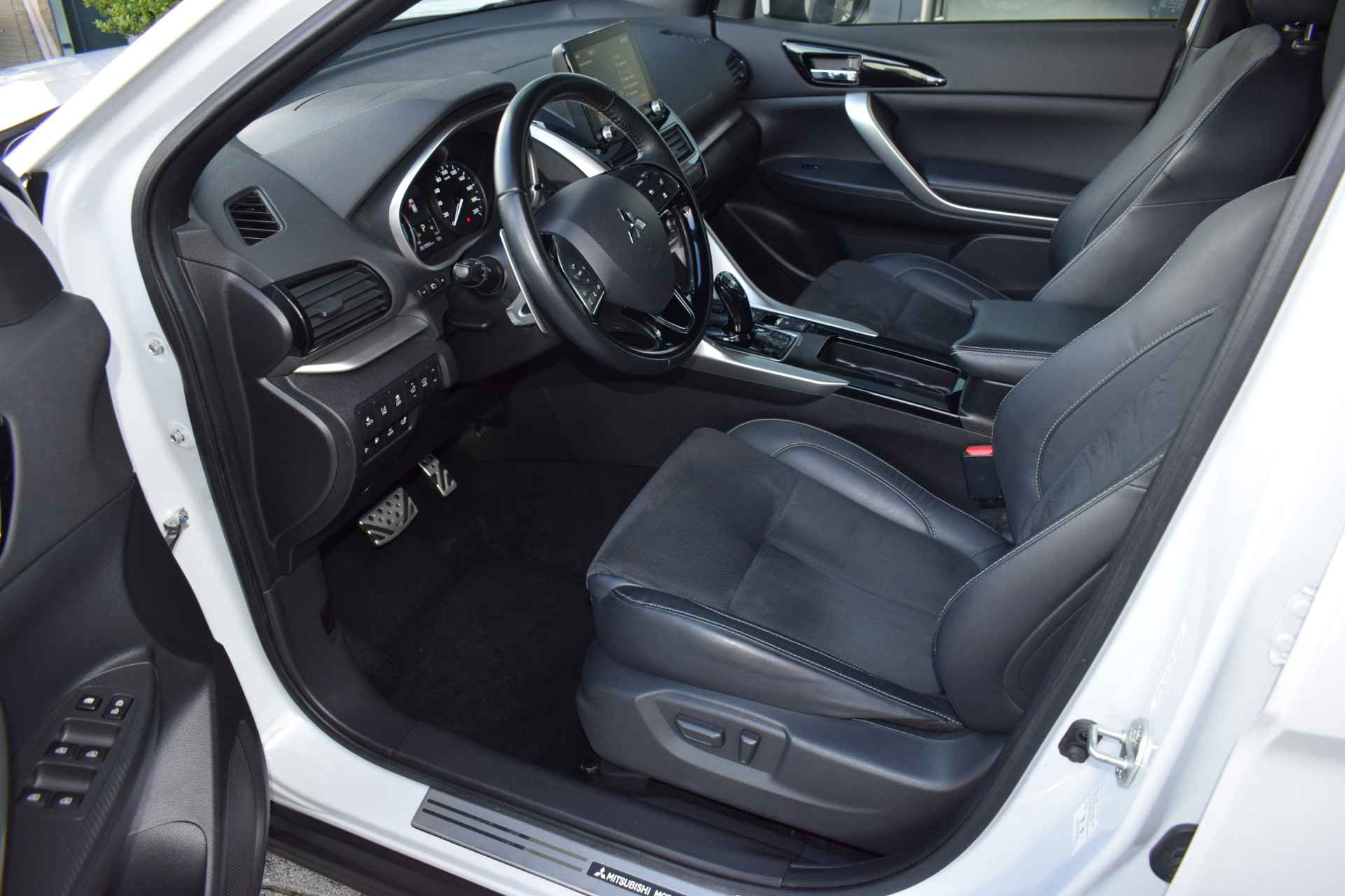 Sportieve, ruime en complete Eclipse Cross 2.4i PHEV 4WD First Edition o.a. voorzien van ECC-Airco, Cruise control Adaptief, Speed Limiter, Navigatie, Achteruitrijcamera, 360-Camera, Bluetooth, Apple Carplay & Android Auto, Head Up display, Armsteunen, Leder/Alcantara, Electrisch verstelbare bestuurdersstoel, Stoelverwarming, Stuurverwarming, In delen neerklapbare achterbank, Privacy glas, Keyless Entry met start/stop-button, 18" LMV, Parkeersensoren voor + achter, Trekhaak Afneembaar, een Trekvermogen van 1.500kg en 8 jaar Fabrieksgarantie! Verkoopprijs € 25.395,- incl. Basis Service-pakket. Rijklaarprijs € 25.990,- incl. FullService-afleverpakket van € 595,-.