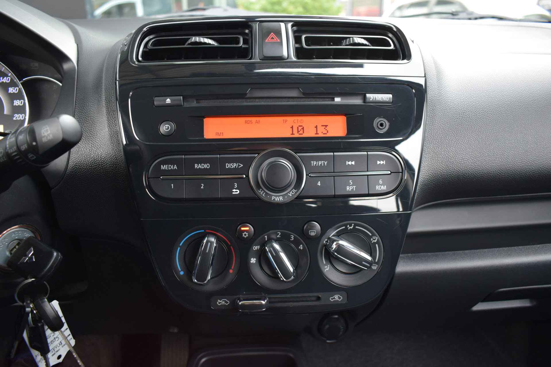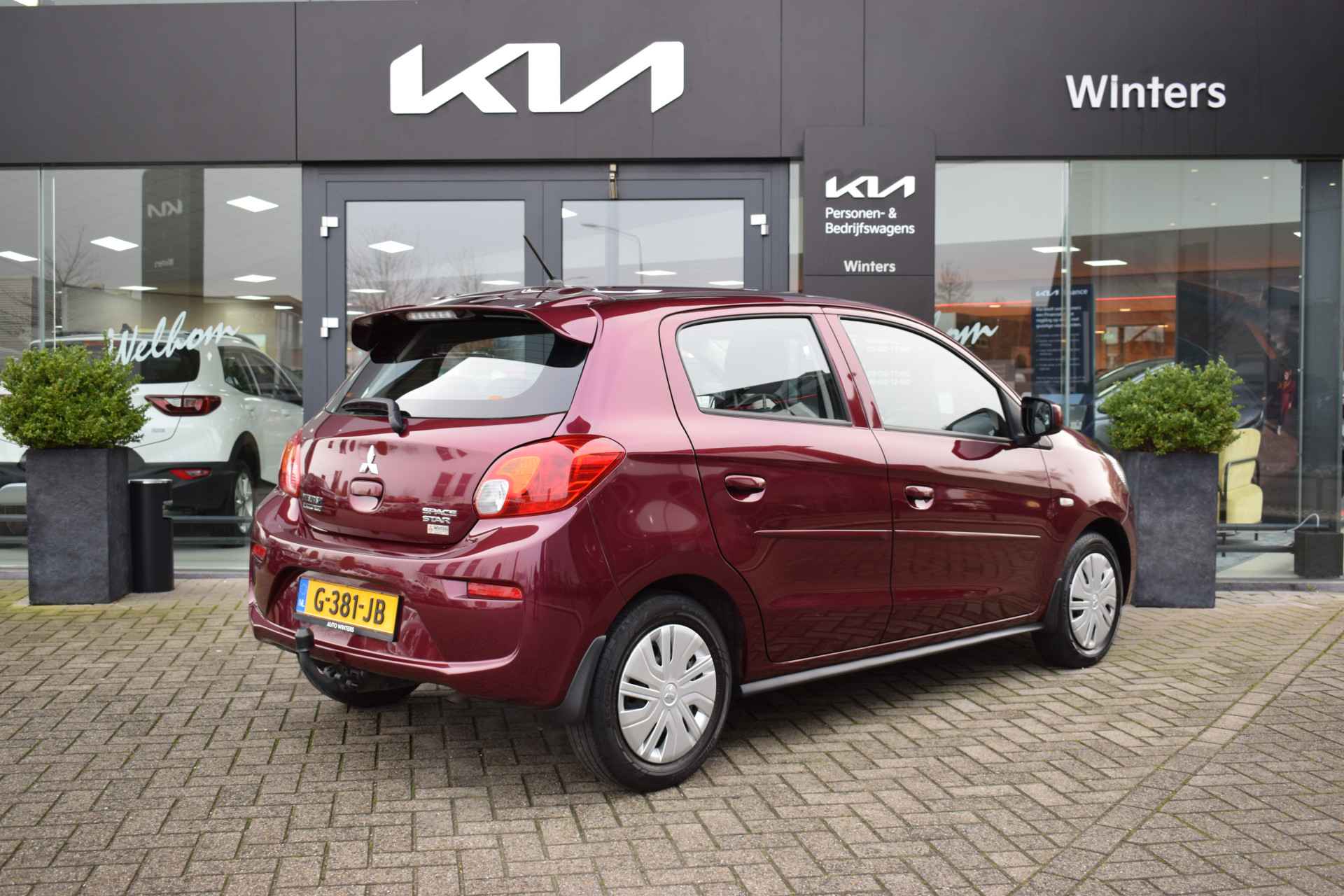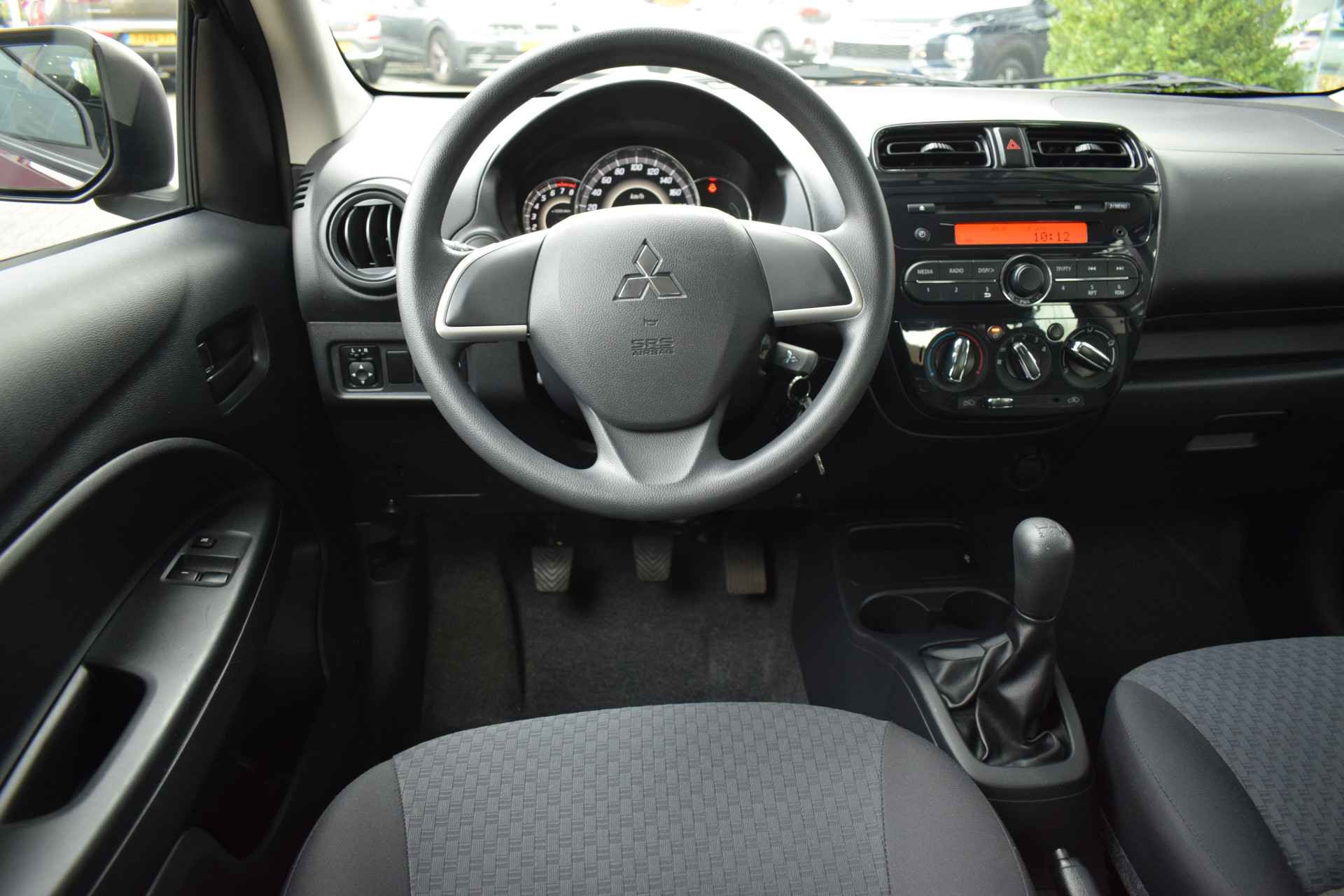 Sportieve en zuinige Space Star 1.0i Cool+ O.a. voorzien van Airco, ABS, Airbags, Stuurbekrachtiging, Radio-CD/MP3 + USB, Electrische ramen voor + spiegels, Deels neerklapbare achterbank, Centrale vergrendeling met afstandbediening, Trekhaak Afneembaar en slechts 40.602km.